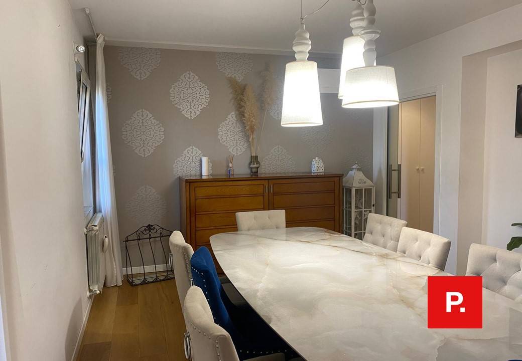 L'appartamento di ampia metratura composto da salone doppio, studio, cucina, tre camere e doppio servizio.