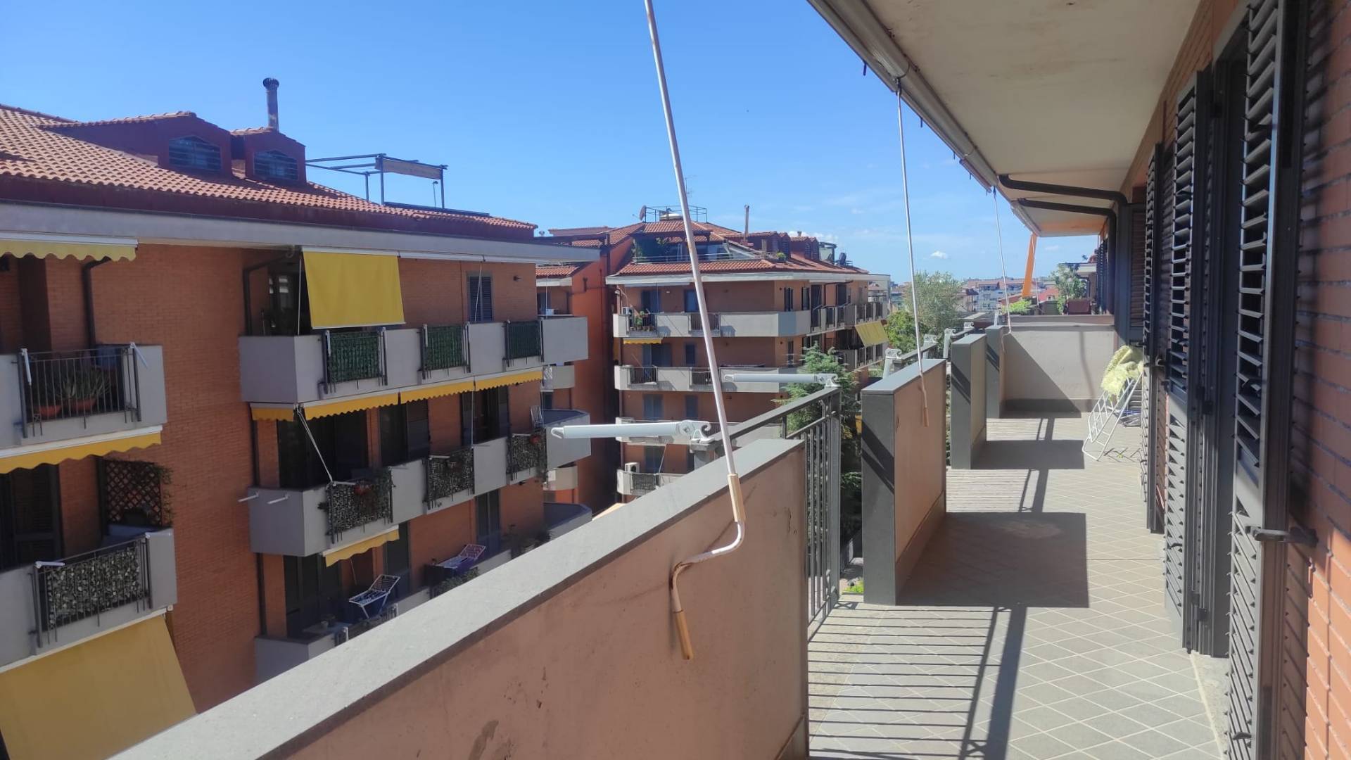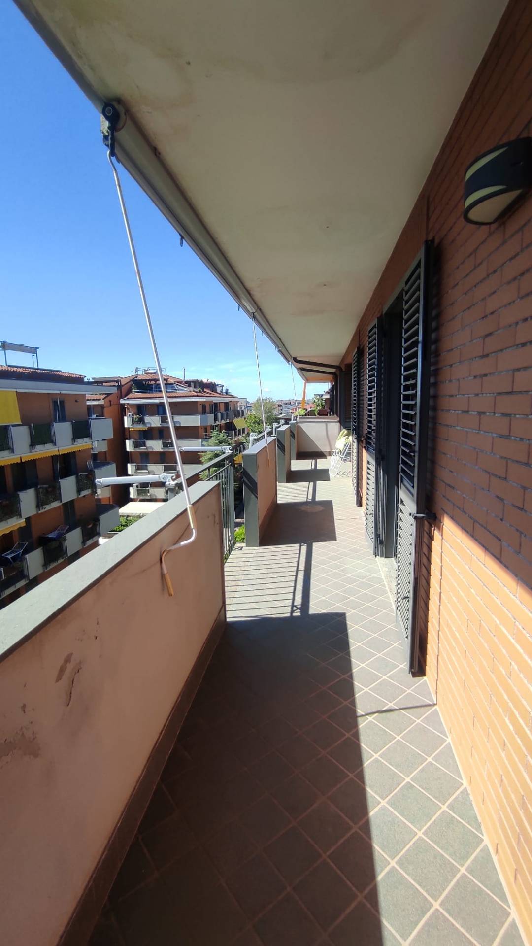 Entrando dal portoncino d' ingresso del quarto piano troviamo un ampio salone con annesso balcone che circonda l' intero immobile dando allo stesso un' ottima luminosit.