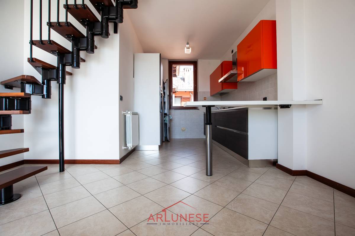 Si trova al primo piano di un edificio costruito nel 2011 di sole 4 unit . La sua superficie totale di 75 metri quadrati, disposto su due livelli, piano primo soggiorno con cucina a vista, camera matrimoniale e bagno al piano superiore mansarda open space con travi a vista.
