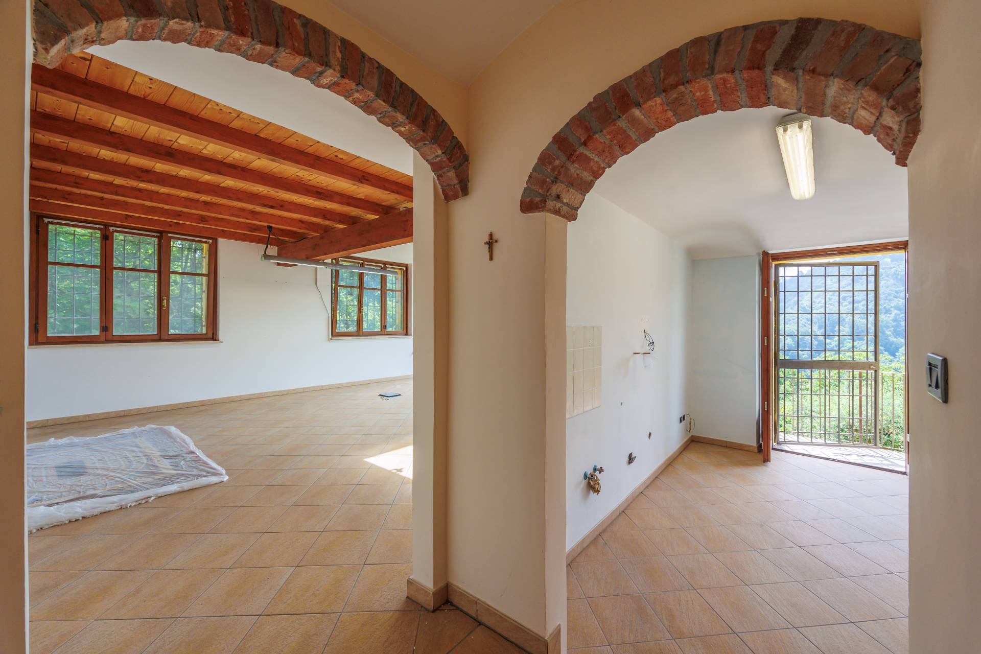 L'immobile si presenta in ottimo stato ed cosi composto: ingresso, ampio soggiorno con soppalco da cui le ampie vetrate permettono una vista sul verde esterno della collina, cucina, due camere e un bagno.