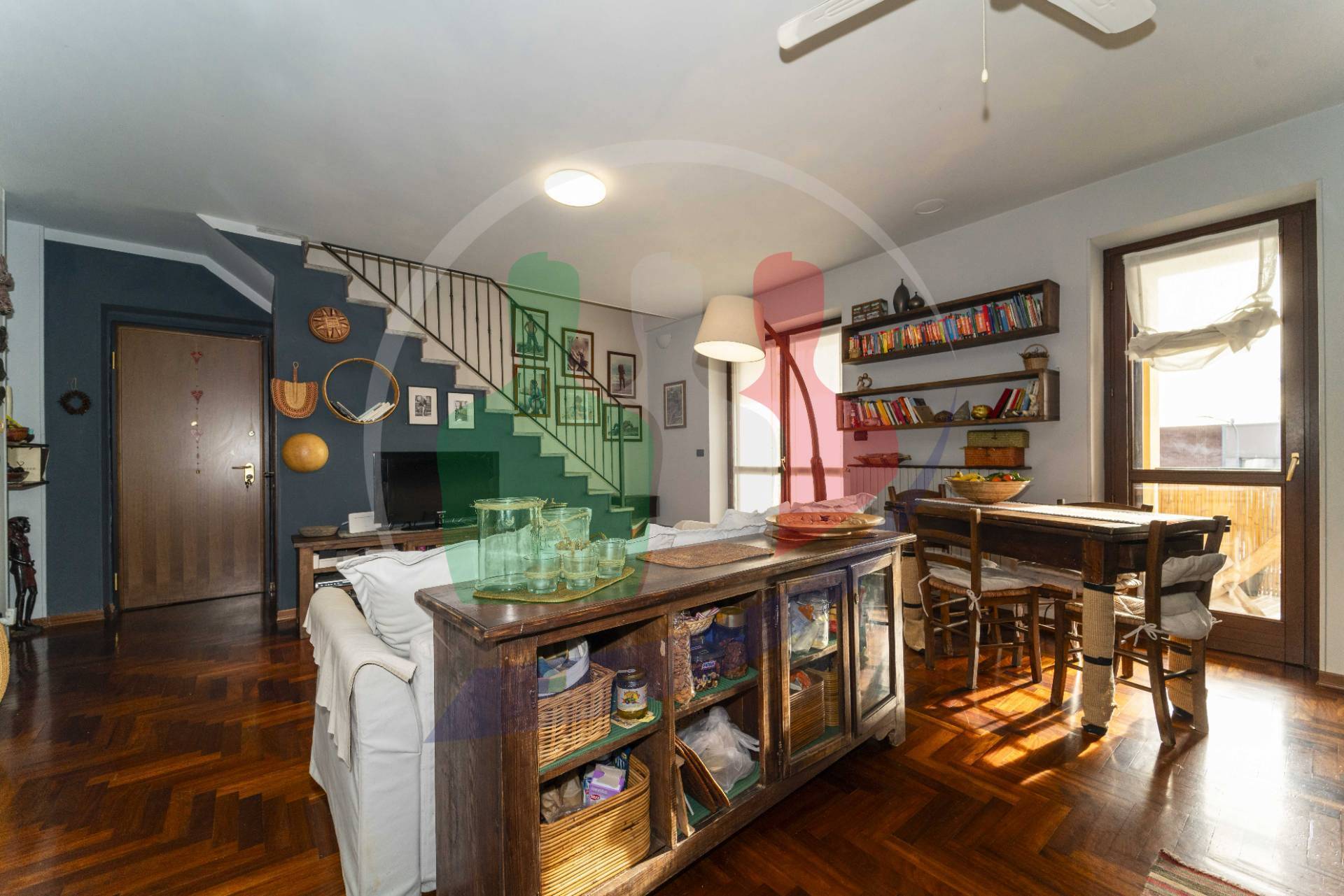 Conclude la propriet un box auto di circa 30 mq. L'appartamento stato rifinito con uno splendido parquet nella zona giorno ed in tutto il piano sottotetto.