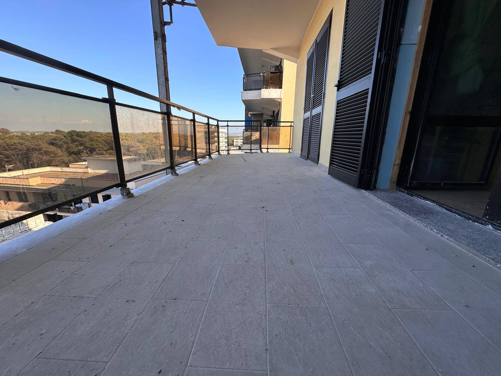 Completano la soluzione un balcone terrazzato a livello e un comodo garage.