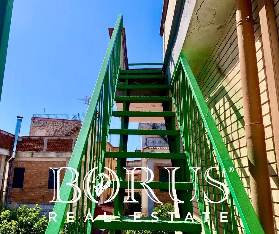 Tramite le scale in ferro, si giunge allappartamento, in fase di ristrutturazione, che dispone di ingresso su salone e cucina, due camere da letto (una con balcone) ed un accessorio.