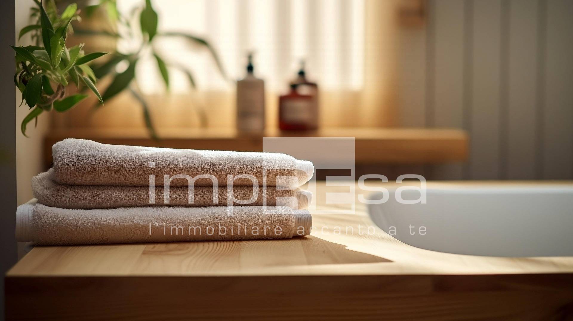 In contesto residenziale a poca distanza dai servizi principali, costruzione in stile rustico perfettamente inserita nel paesaggio composta da cinque appartamenti in classe A4 completi di tutte le nuove tecnologie e comfort per vivere ***.*******.** piano terra con accesso totalmente indipendente entriamo in luminosa zona giorno orientata a sud con cucina a vista e living, disimpegno che conduce ad un ampio bagno giorno/lavanderia per avere la casa sempre in ordine e due camere ampie, una matrimoniale e una doppia servite da ulteriore bagno finestrato.