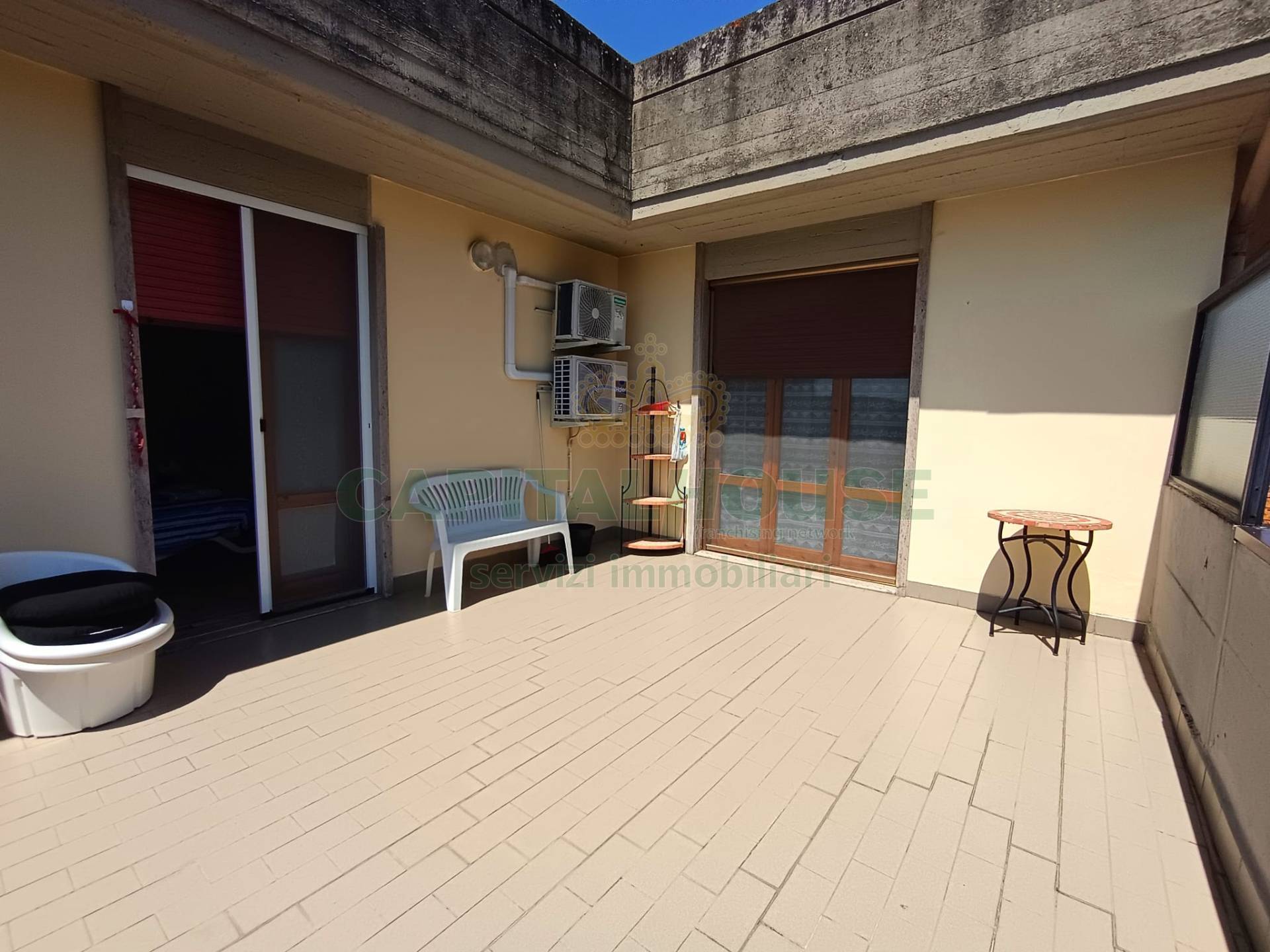 Ideale per un single o per una giovane coppia, l'appartamento distribuito su una superficie di 63 mq e si apre direttamente in un ampia zona soggiorno-pranzo con accesso diretto su una splendida terrazza dove poter godere momenti di relax e cene all'aperto con amici o parenti; poi troviamo un cucinotto che d accesso su un altro terrazzino coperto da una comoda tenda e sfruttato anche come angolo lavanderia.