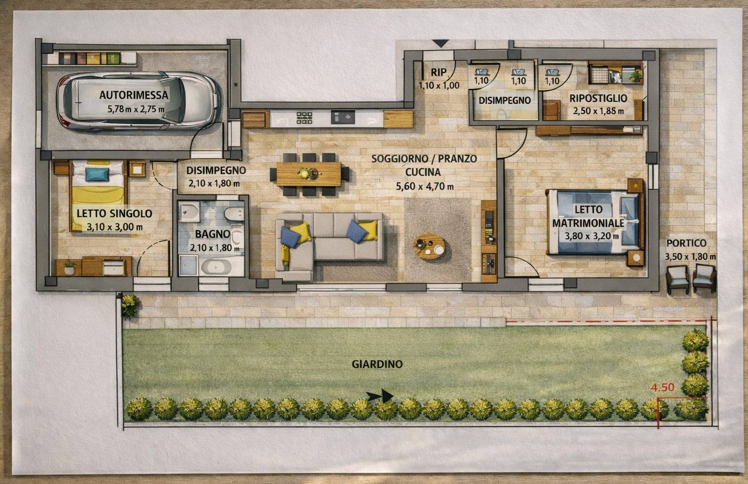 Caratteristiche principali ' Riscaldamento a pavimento ' Impianto fotovoltaico esclusivo ' Predisposizione aria condizionata ' Infissi ad alta efficienza con triplo vetro ' Zanzariere ' Tapparelle motorizzate ' Ottimo isolamento termico e acustico Soluzione ideale per chi cerca una casa di nuova costruzione, efficiente e vicina ai servizi, in un contesto residenziale curato.