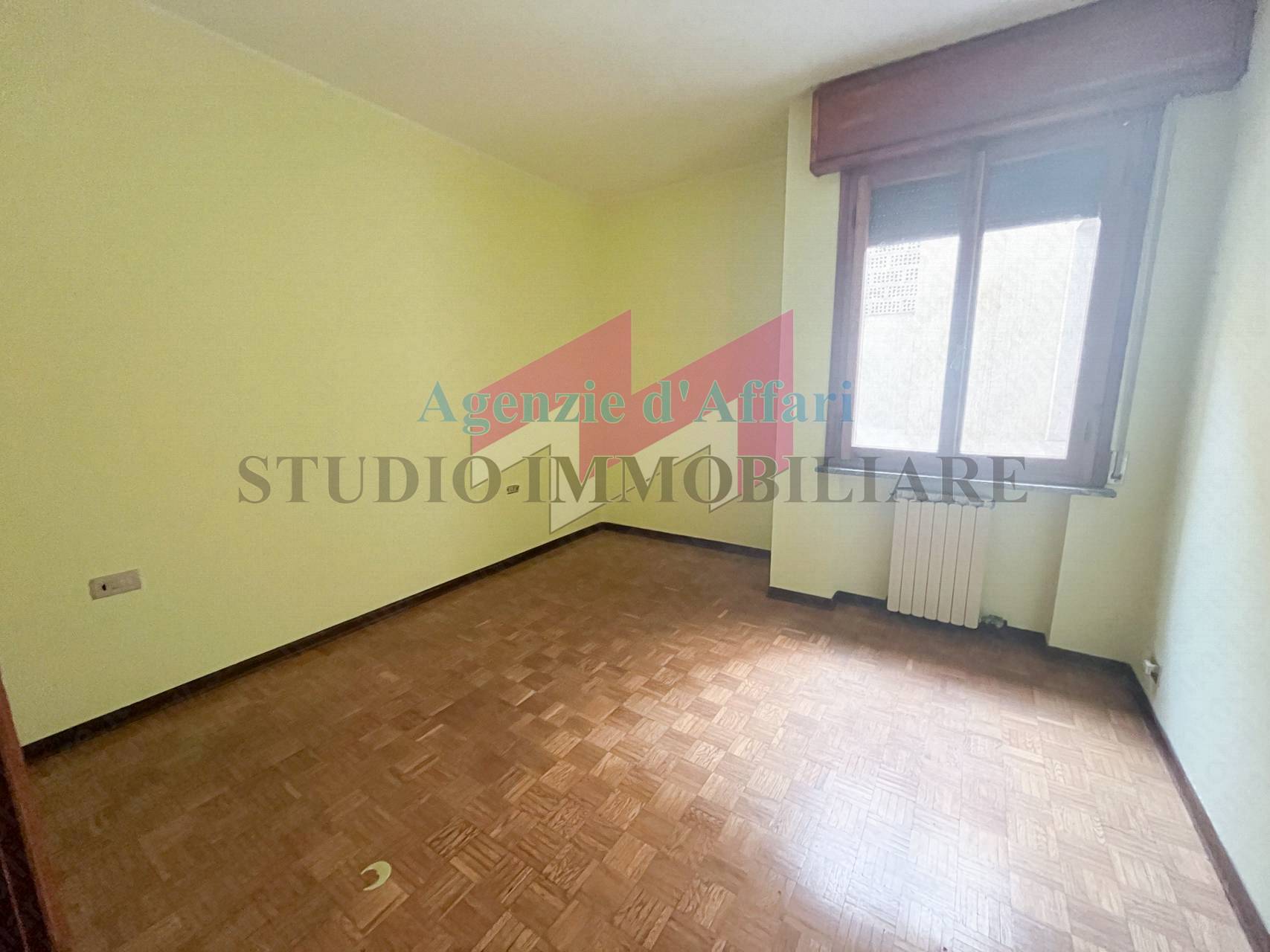 L'immobile, in buone condizioni, composto da ingresso, cucinotto, pranzo, ampio soggiorno con balcone, tre camere da letto e due bagni.