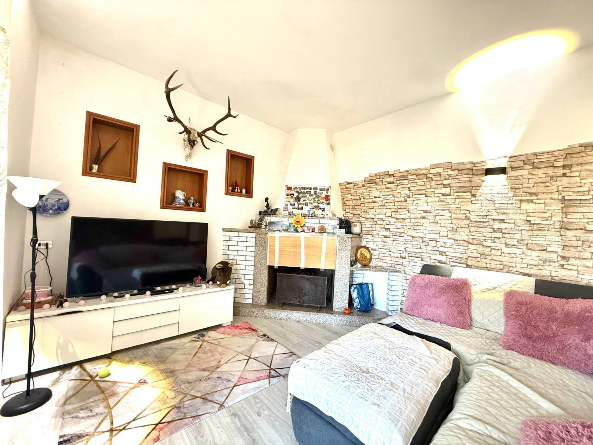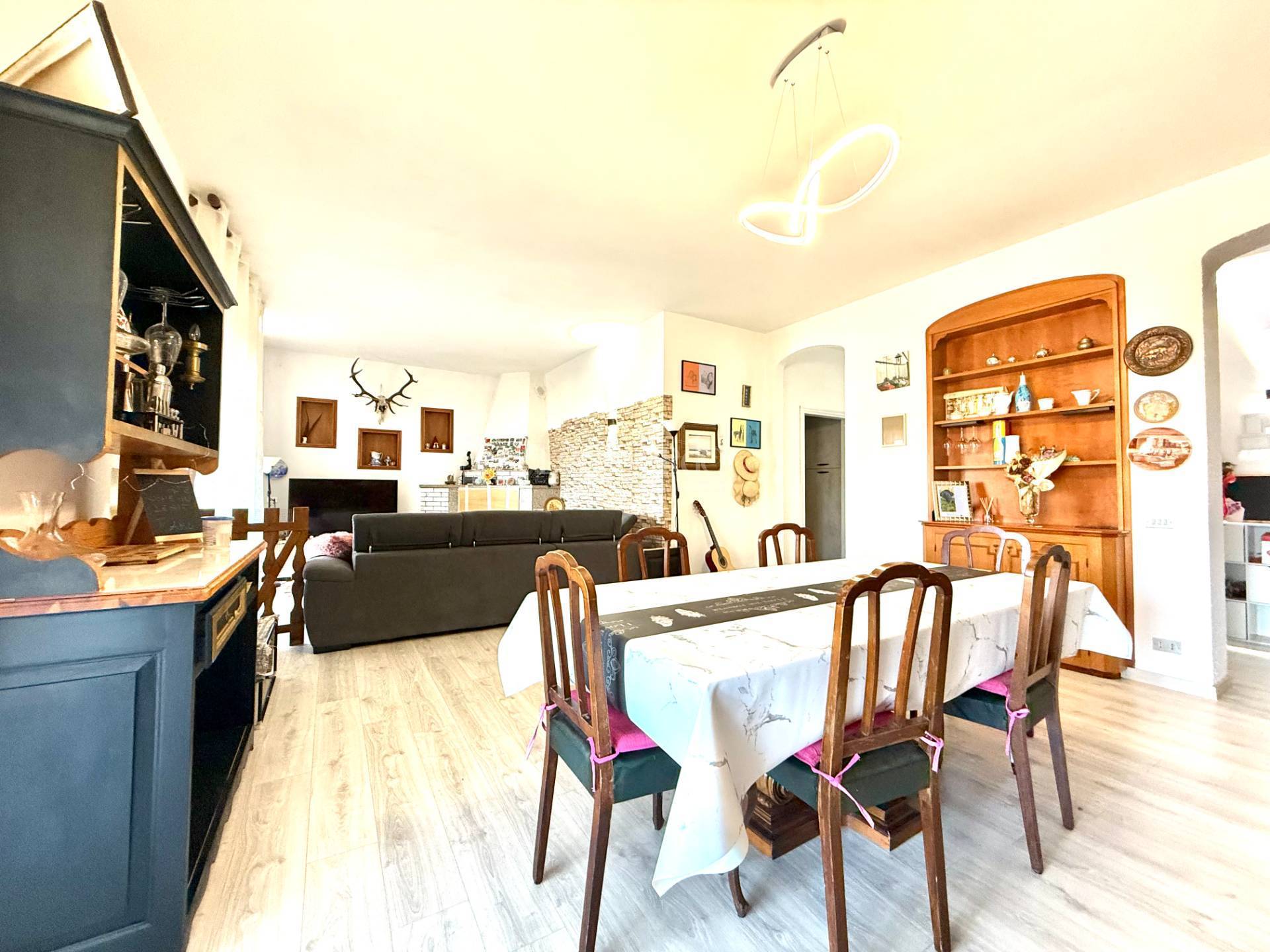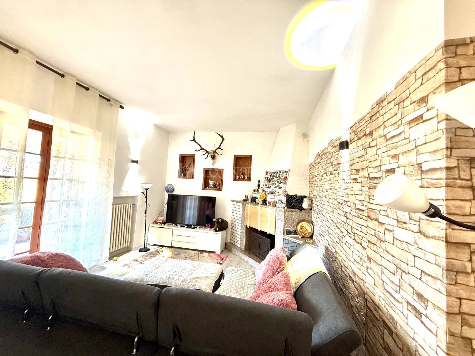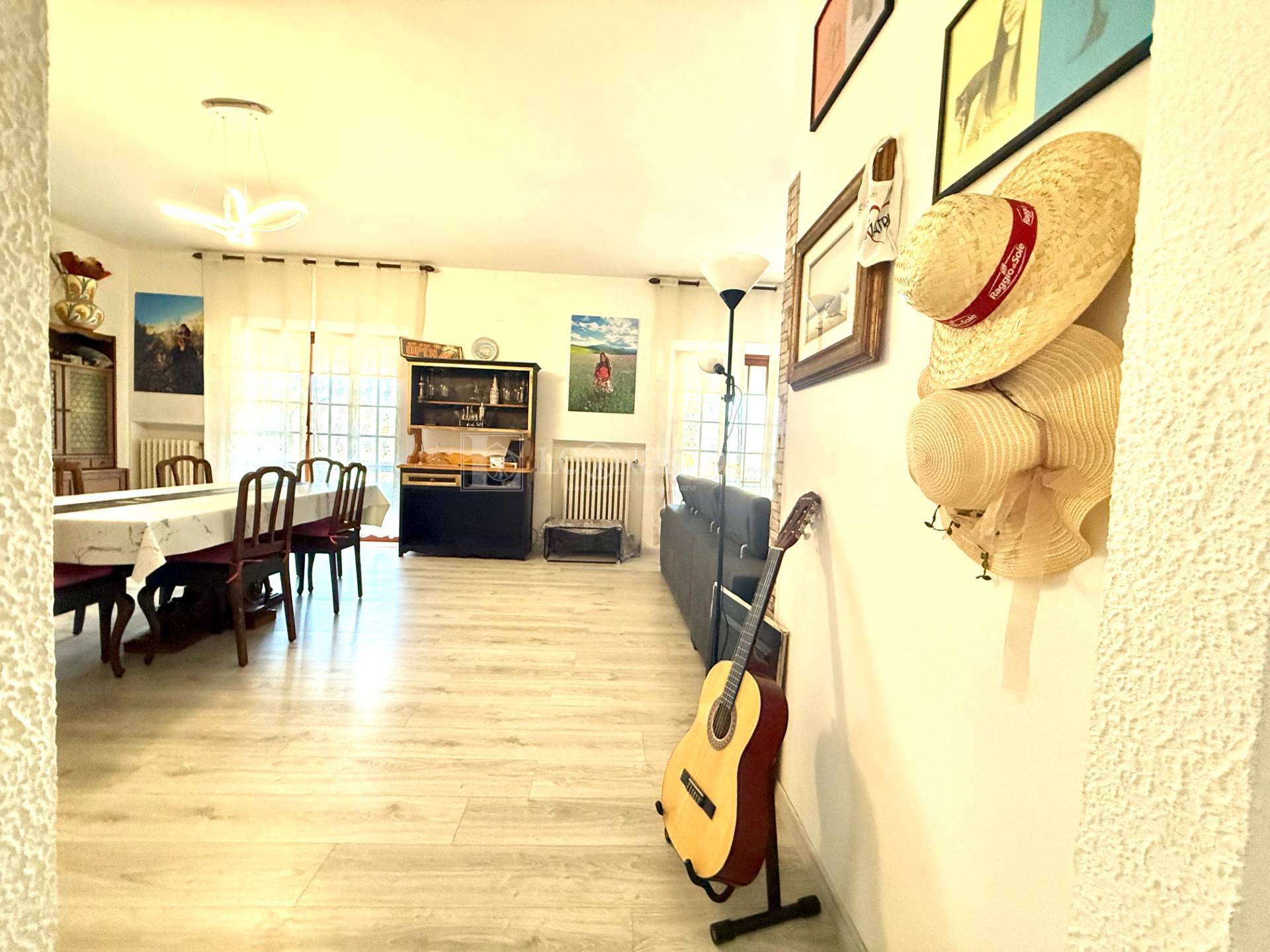 Disimpegno, ampio e soleggiato salone con camino ed accesso da porte finestre su balcone verandato, cucina con camino ed accesso a balcone, camera matrimoniale, bagno con vasca.