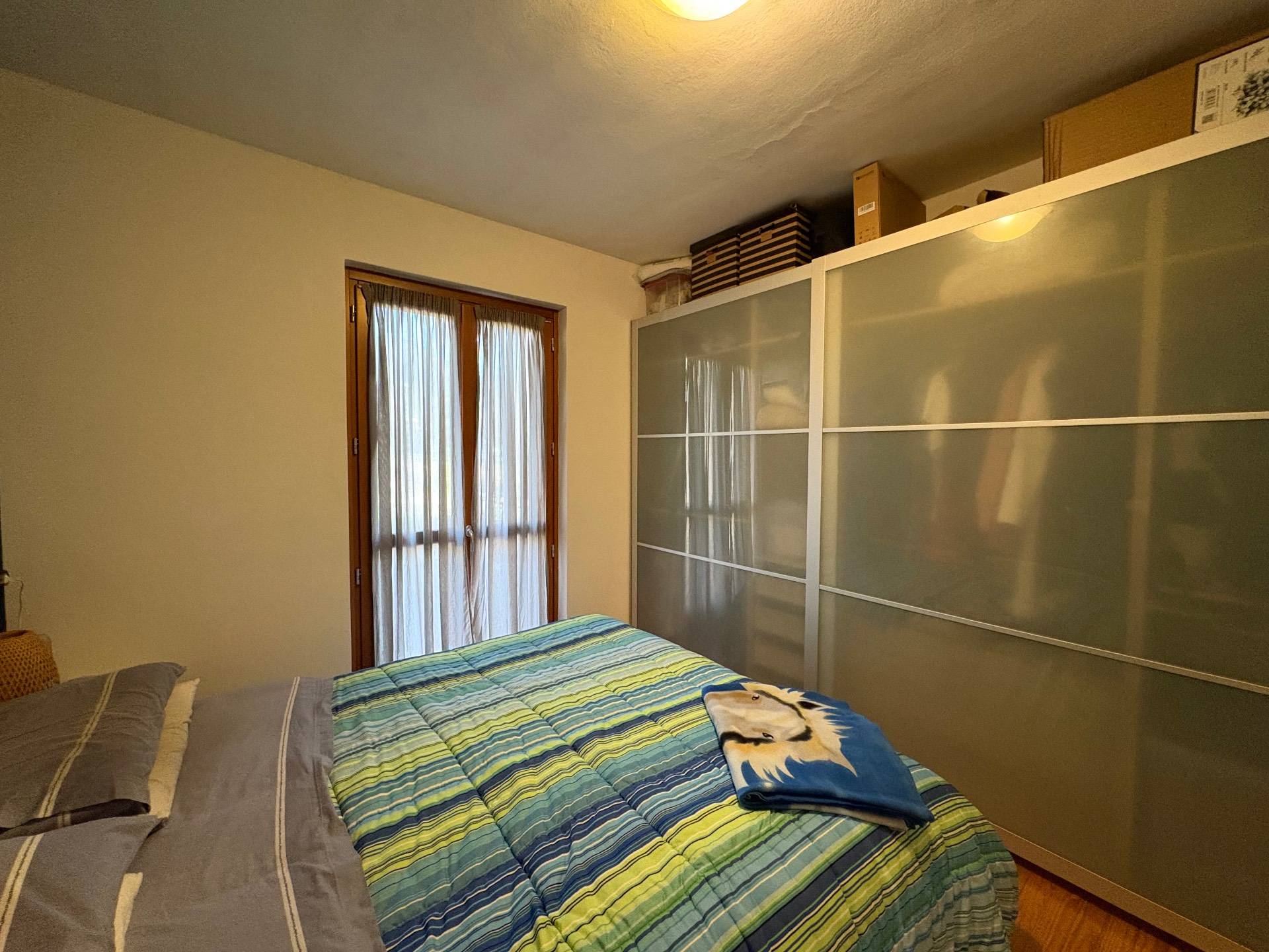 La zona notte offre una camera matrimoniale con accesso al balcone e splendida vista sulla Presolana, una seconda camera con uscita su un terzo balcone e un bagno finestrato con doccia.