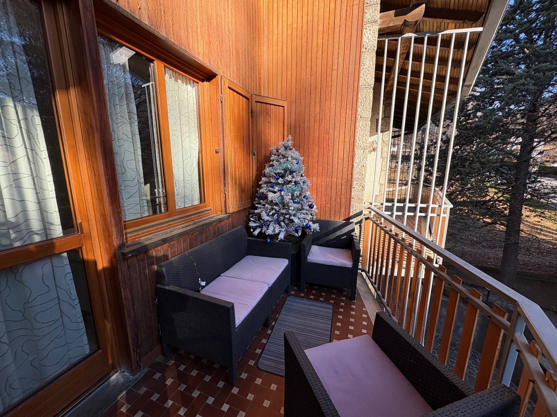 Situato al primo primo ed ultimo piano di una palazzina di sole 6 unit, garantisce tranquillit e riservatezza e si compone come segue: Lingresso conduce a un luminoso soggiorno, vero cuore della casa, impreziosito da camino e stufa, con accesso diretto al terrazzo abitabile, ideale per pranzi e cene allaperto immersi nellaria di montagna.