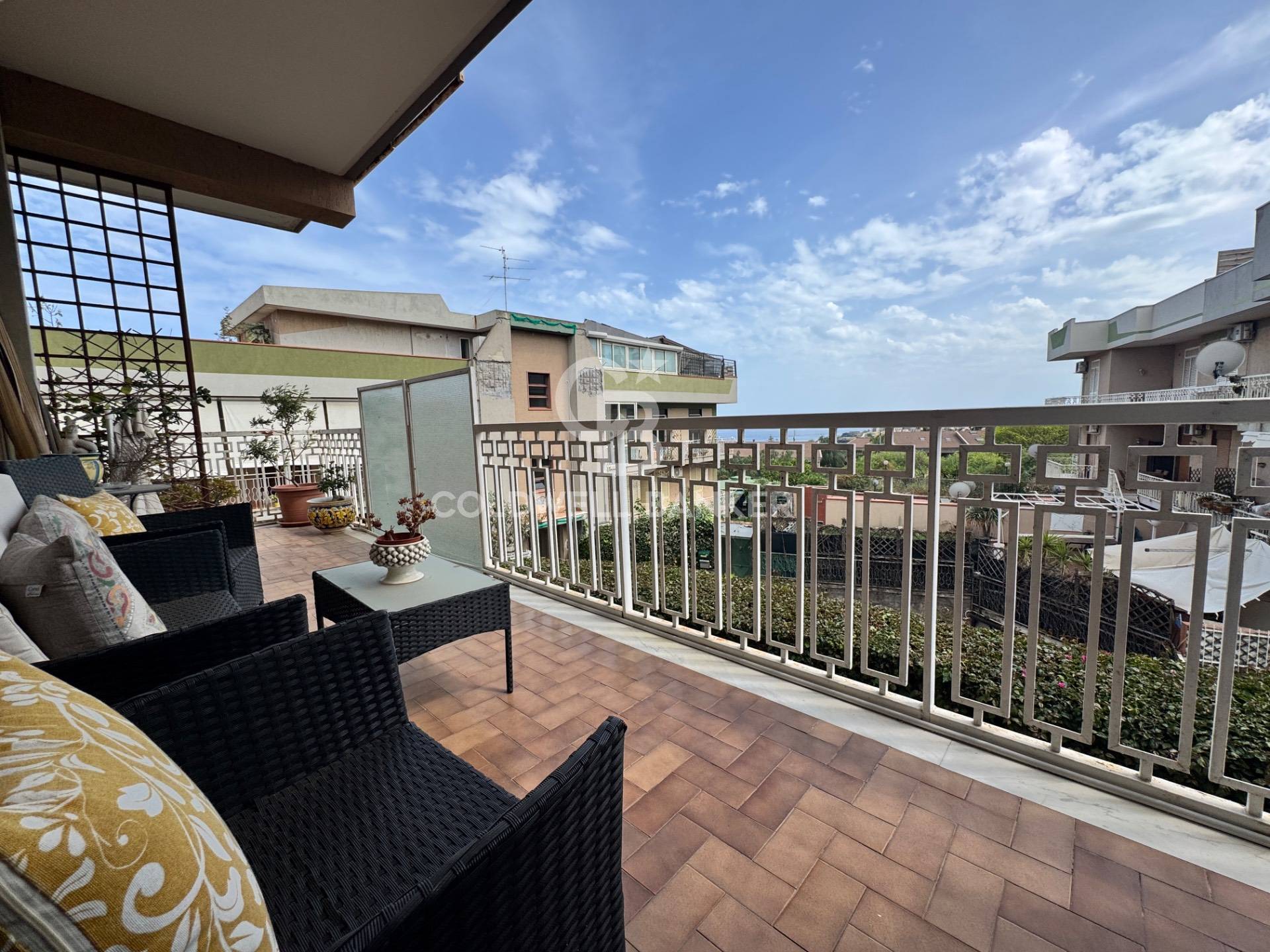 **Esterni e vista:** Limmobile vanta balconi terrazzati e un terrazzo principale, ideali per rilassarsi allaria aperta, pranzare allesterno o semplicemente godere del panorama sul mare. La posizione e le numerose aperture contribuiscono a rendere lambiente molto luminoso e arioso, con splendide viste che abbracciano il mare e la citt. **Garage:** Completa la propriet un comodo garage con accesso interno diretto dalla scala condominiale, offrendo sicurezza e praticit per il parcheggio.