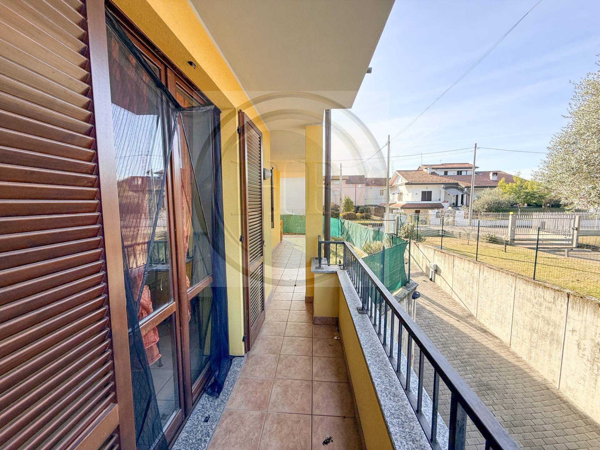 Il bilocale al piano terreno ed di circa 46m2 cosi suddivisi: ingresso in soggiorno con cucina a vista, disimpegno, bagno con doccia, camera matrimoniale, balcone, portico coperto e piccolo giardino di propriet.