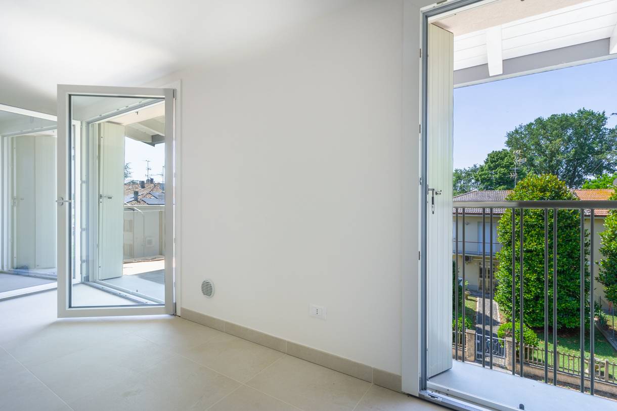 Due appartamenti al primo piano caratterizzati da ampi balconi e una luminosit naturale che pervade ogni ambiente.