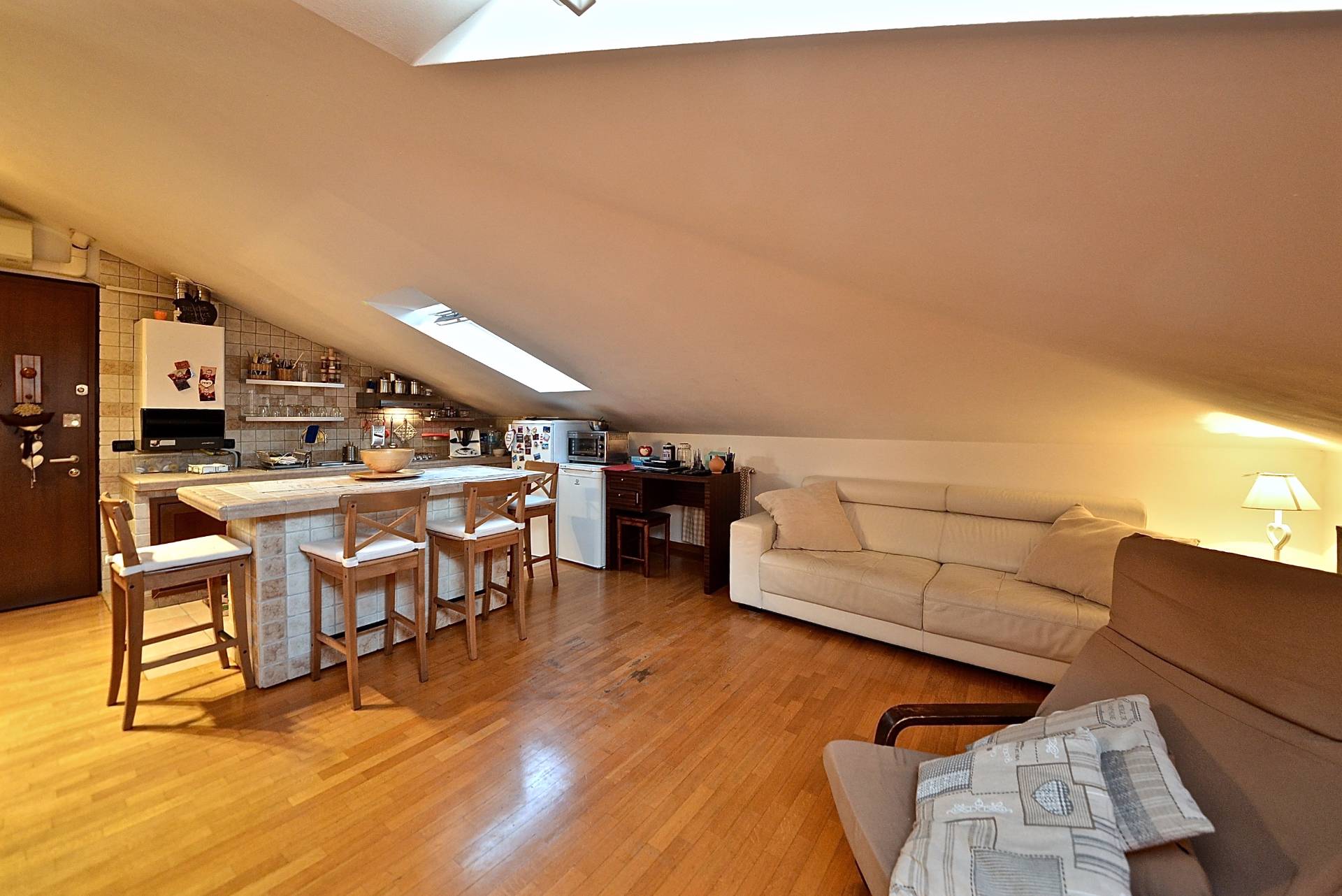 CERIANO LAGHETTO: ZONA STAZIONE Comodissimo con la stazione del Paese, proponiamo in vendita, in recente contesto di sole sei unit abitative, grazioso appartamento mansardato cos meglio disposto : ingresso su cucina a vista in muratura, soggiorno, disimpegno notte, camera matrimoniale con cabina armadio e servizi con doccia.