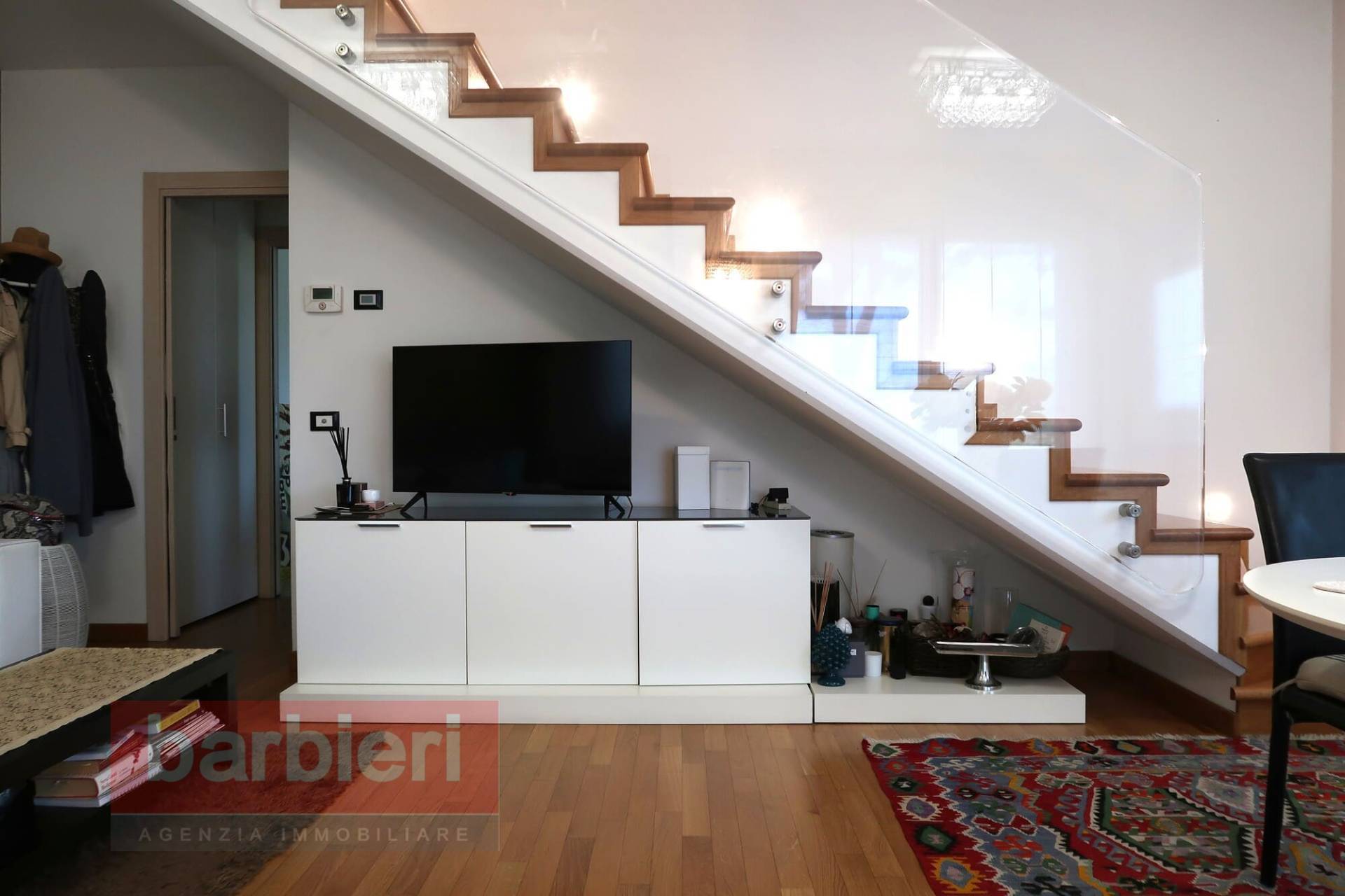 L'appartamento, dotato di finiture di pregio, dispone di riscaldamento autonomo a pavimento, infissi in p.v.c., pompa di calore inverter caldo/freddo.