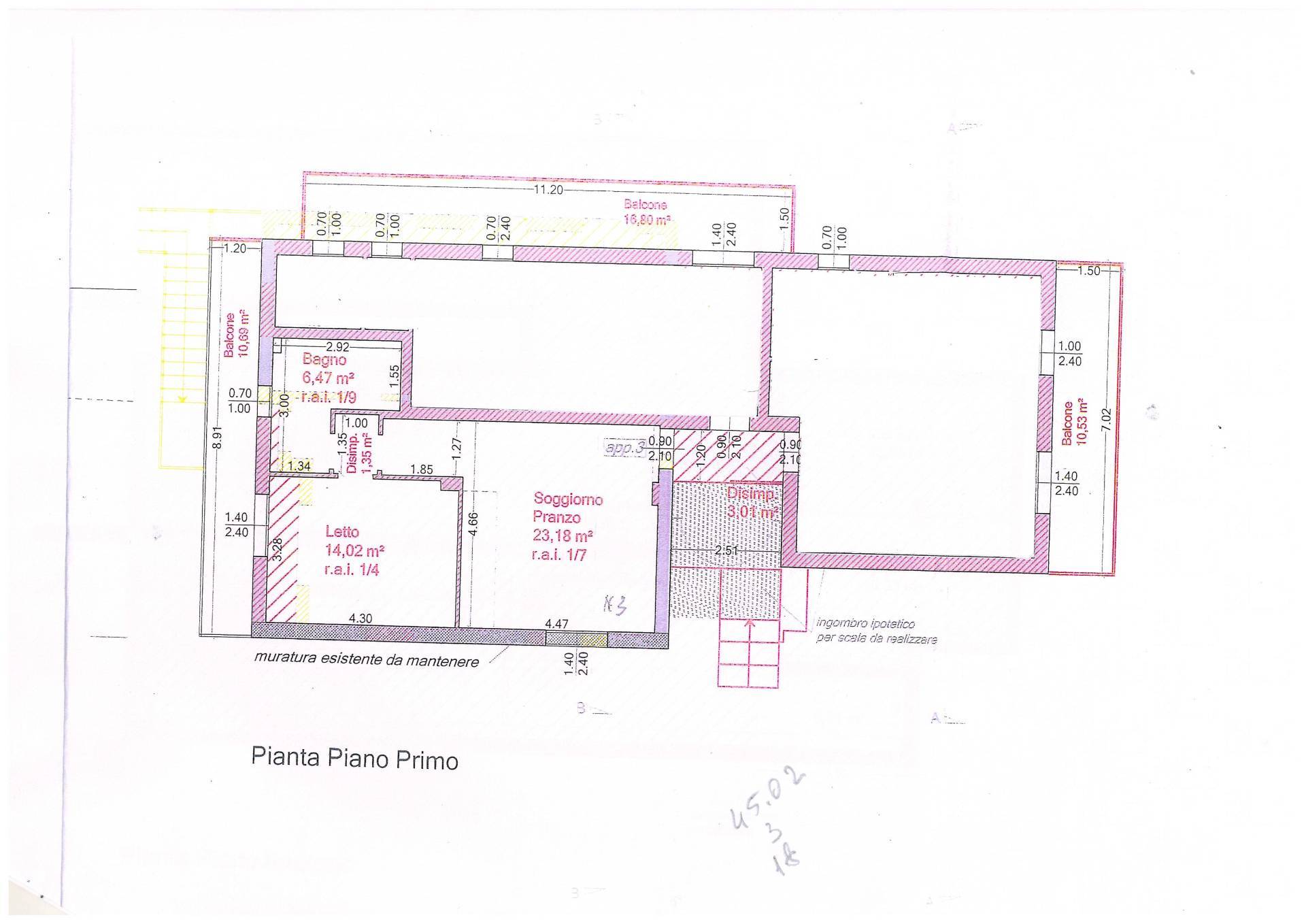 La soluzione situata al primo piano con ingresso su zona giorno con cucina a vista, disimpegno, camera da letto matrimoniale con balcone da 10mq e bagno.