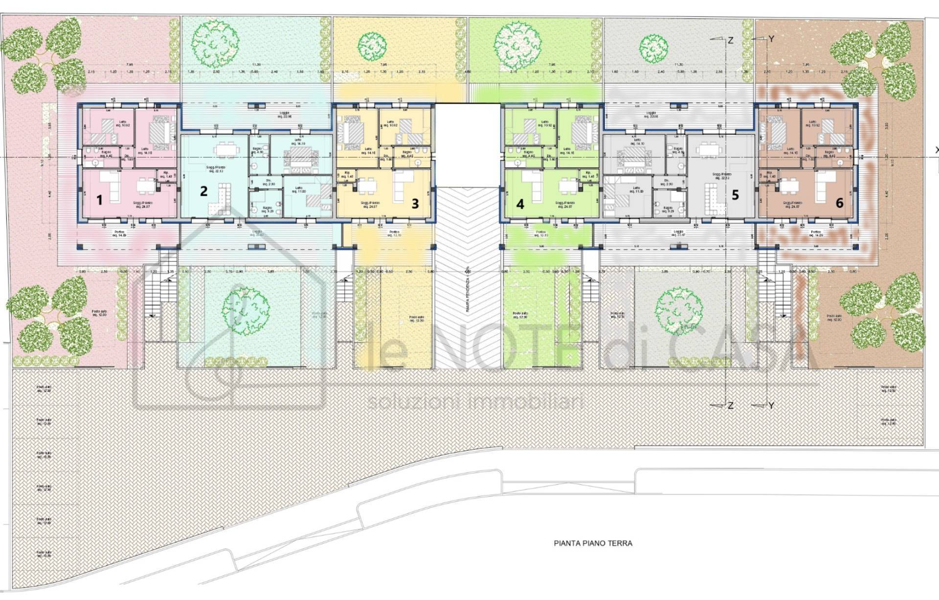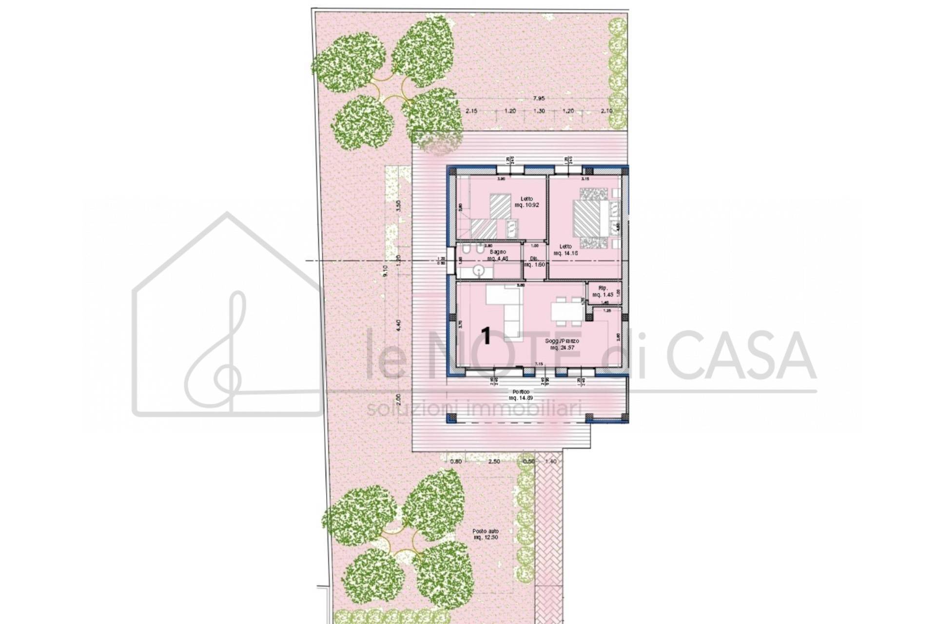 Trilocale al piano terra con giardino Appartamento di nuova costruzione con ingresso indipendente in fabbricato da 14 unit a Tagliata di Cervia, composto al piano terra da: giardino, porticato, soggiorno/angolo cottura, 1 camere da letto matrimoniale, 1 camera singola, ripostiglio e bagno.