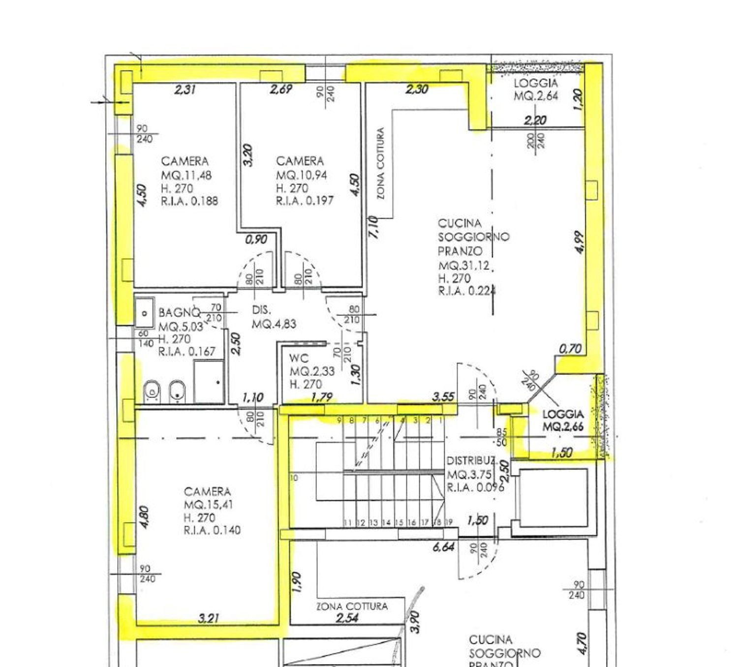 L'immobile posto al piano primo si compone di soggiorno con angolo cottura e terrazzo loggiato, bagno principale finestrato con box doccia, spaziosa camera da letto matrimoniale, due camere da letto doppie ed ulteriore bagno di servizio.
