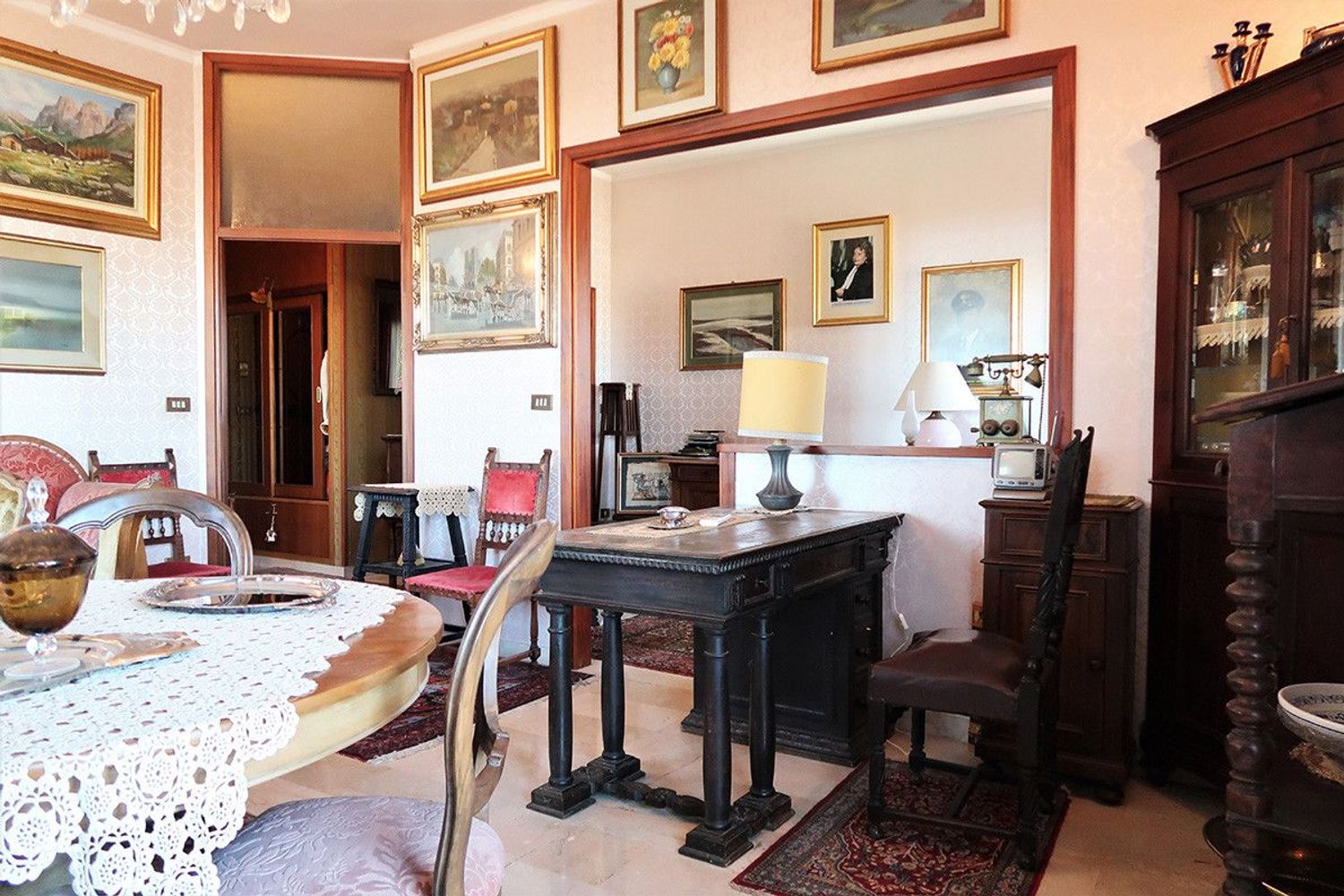 Nel salone possibile ricavare una ulteriore terza camera da letto, al momento adibita ad uso studio/zona tv. Completano l'offerta un garage al piano terra e una cantina al piano ammezzato.
