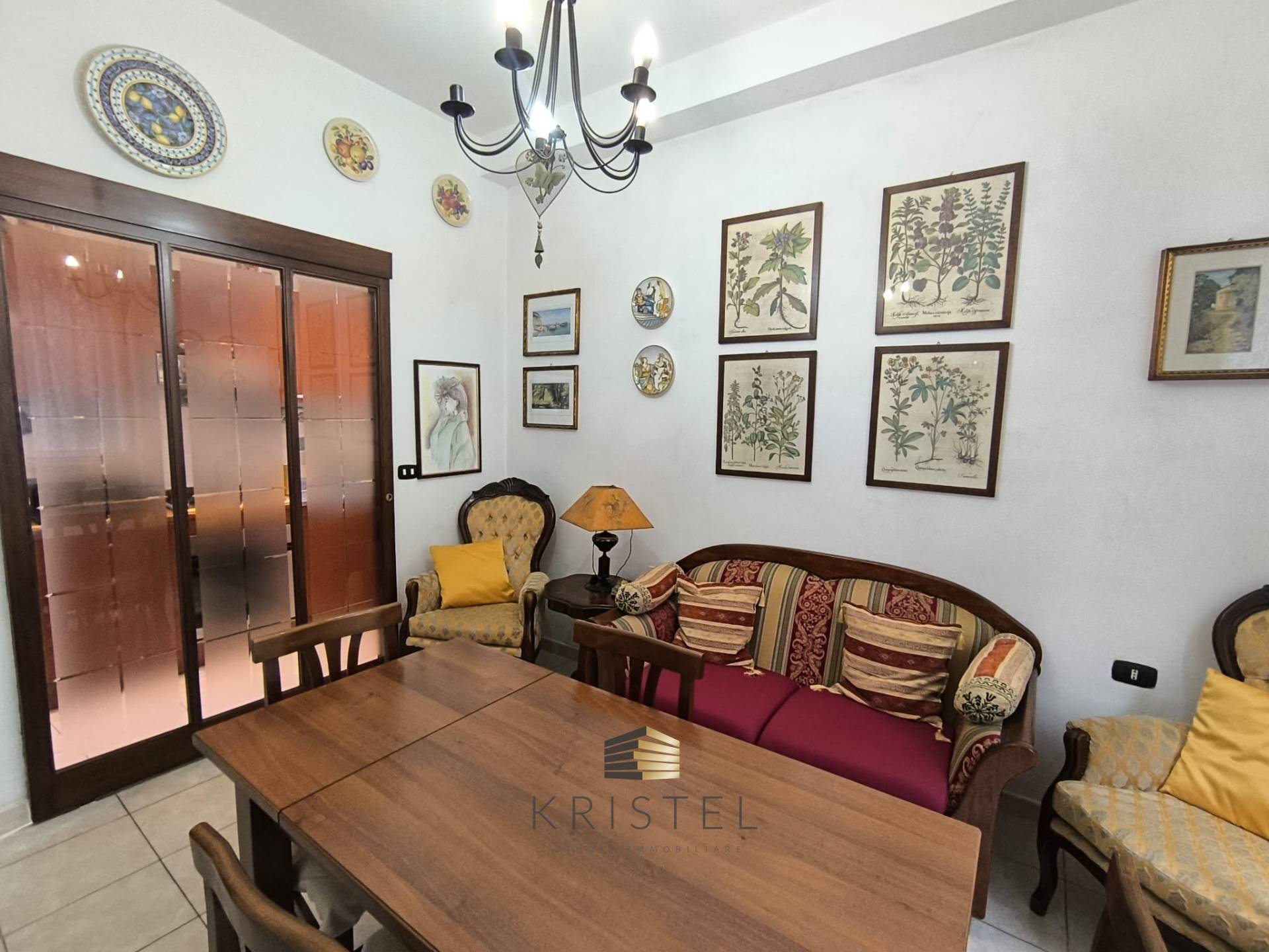 E' composto da 5 vani, comprende un comodo ingresso, una cucina arredata ed abitabile, una sala da pranzo/salotto, una camera matrimoniale, una cameretta singola ed un bagno.