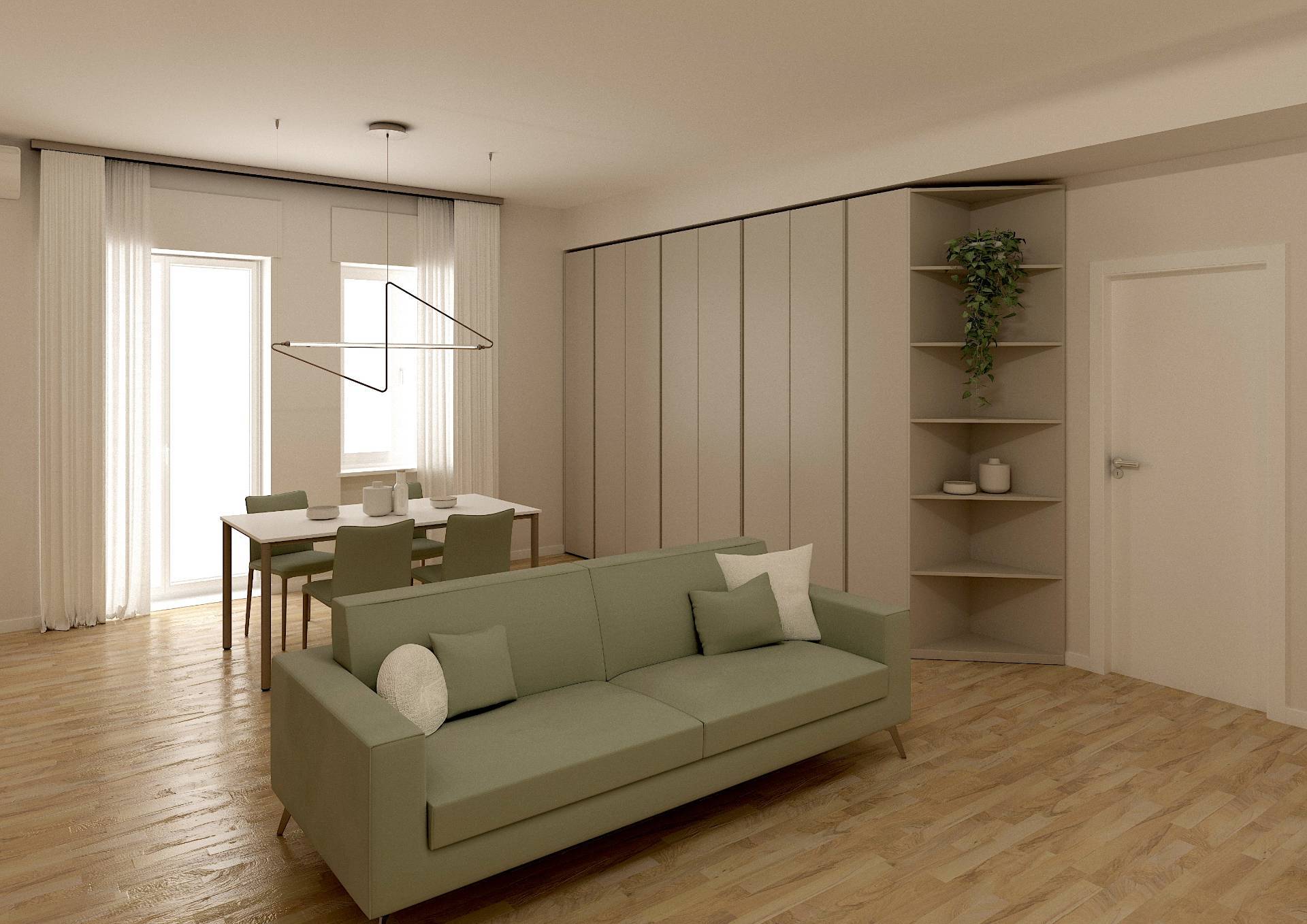 Limmobile viene consegnato finemente ristrutturato, pronto da abitare, con materiali di alta qualit e finiture moderne, come da documentazione fotografica e render (arredi esclusi). Il punto di forza dellabitazione il grande soggiorno open space di circa 43 mq, un ambiente accogliente e luminosissimo grazie alle ampie vetrate, con cucina a vista perfettamente integrata.