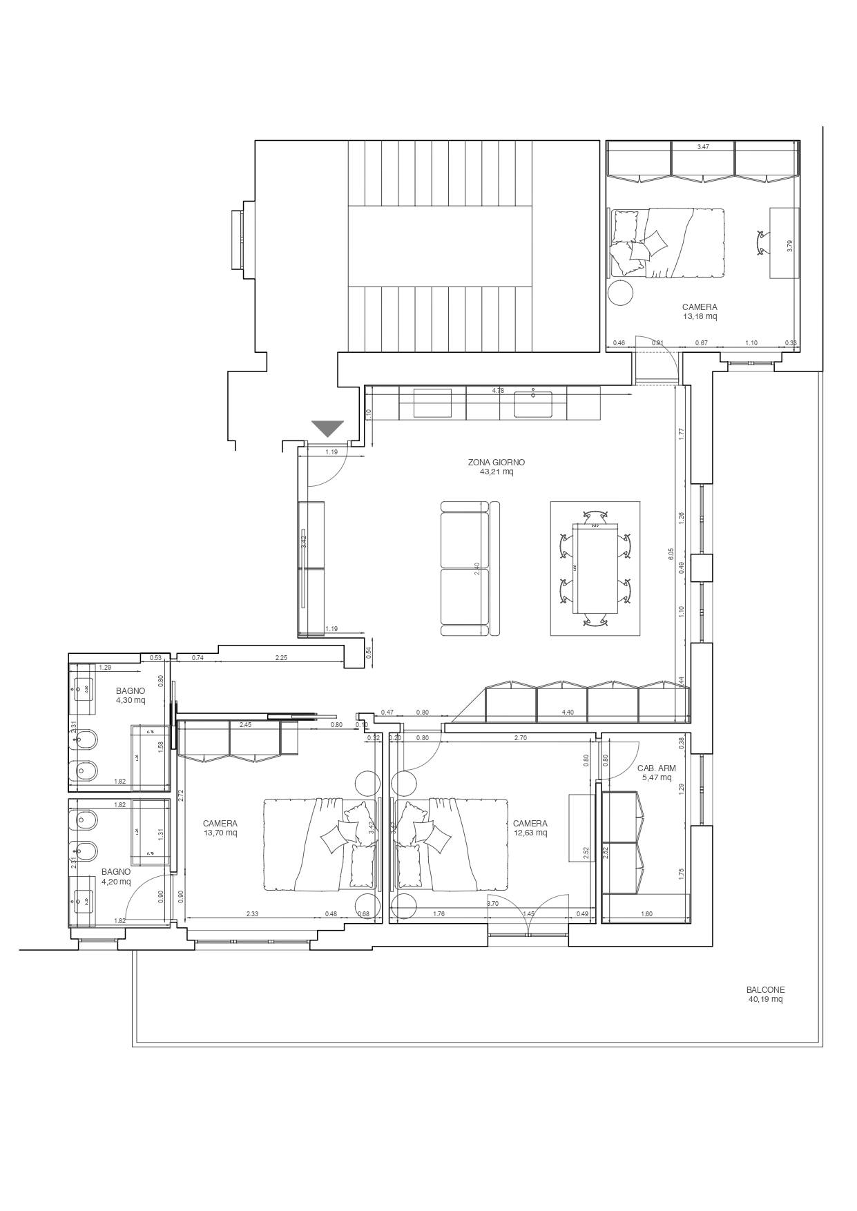 Un valore aggiunto rappresentato dallampio balcone perimetrale che circonda lintero appartamento, garantendo uno sfogo esterno vivibile e accessibile da pi ambienti della casa. La zona notte composta da due camere matrimoniali spaziose e confortevoli, oltre a doppi servizi moderni e funzionali, realizzati con finiture di pregio.