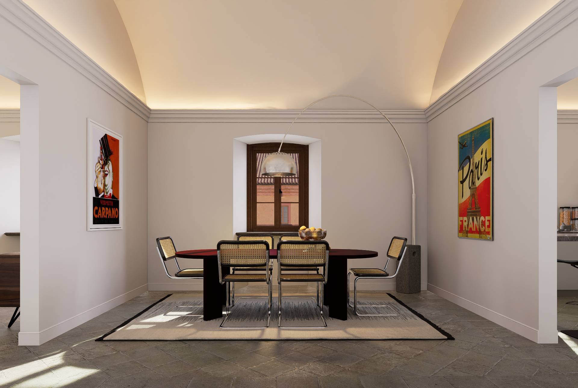 Atmosfera e architettura, volte storiche, proporzioni eleganti e giochi di luce naturale definiscono ambienti di grande fascino.