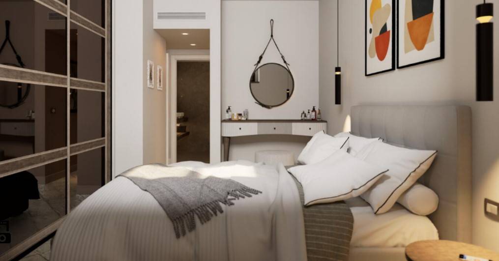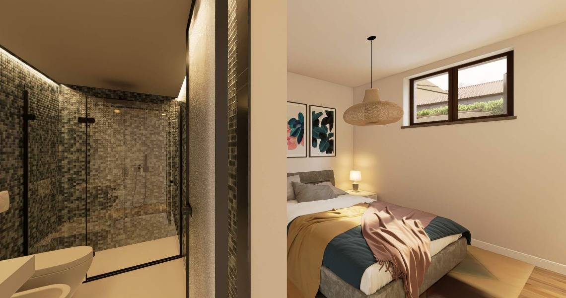 La zona notte ospita due camere da letto, entrambe dotate di bagno privato, oltre a una comoda zona studio.