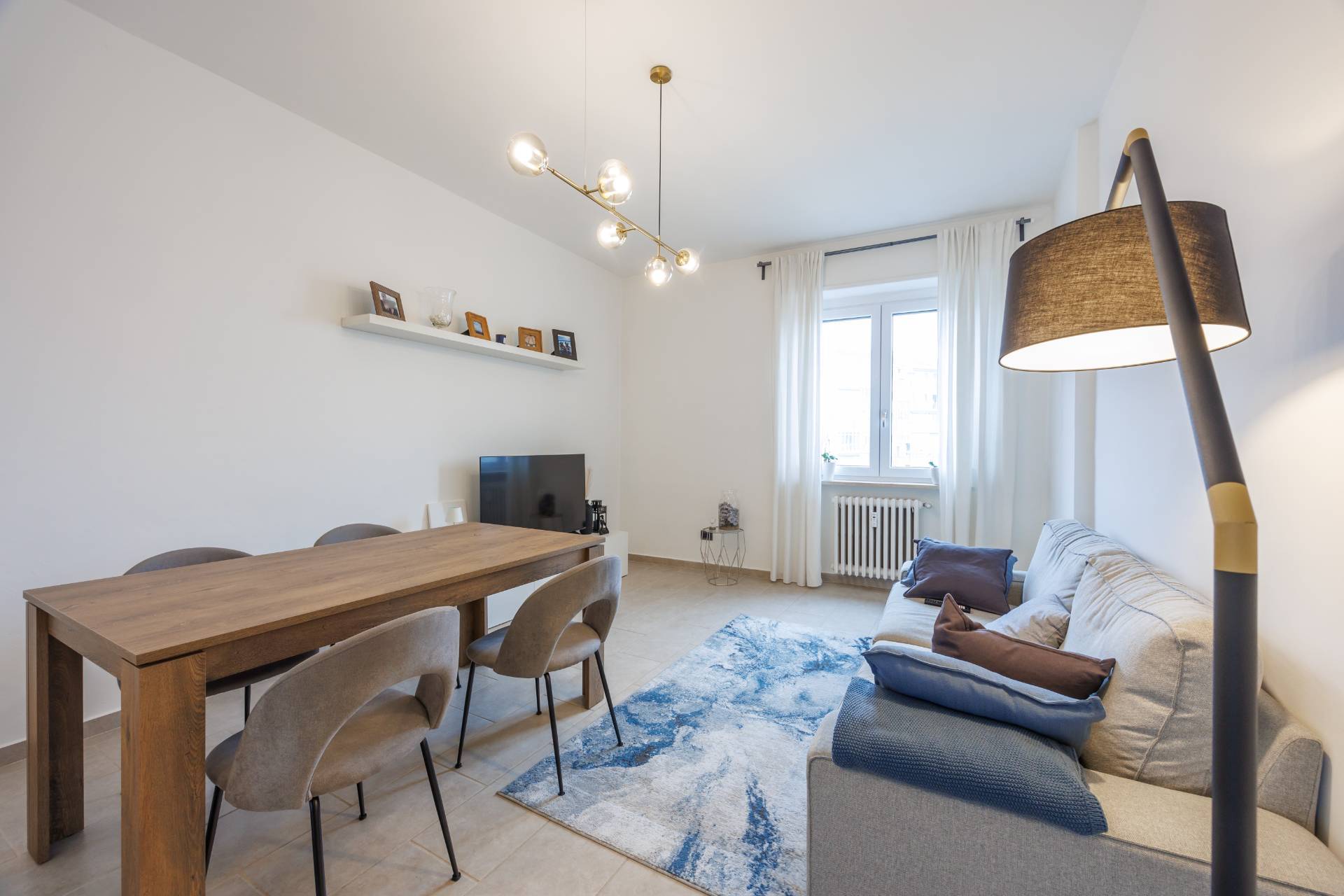 L'ingresso si apre su ampio soggiorno, cucina living, ampia camera da letto e bagno finestrato.