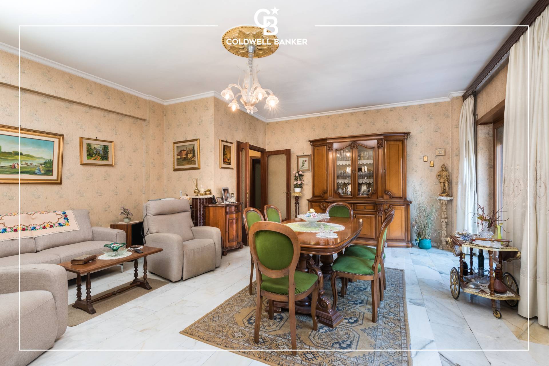 Gli spazi interni risultano comodi e ben distribuiti, studiati attentamente per la loro godibilit e per un arredo confortevole; di concezione classica presentano un ampio ingresso con armadio a muro direttamente collegato ad un luminoso salone doppio dal quale si accede al pi grande dei due balconi.