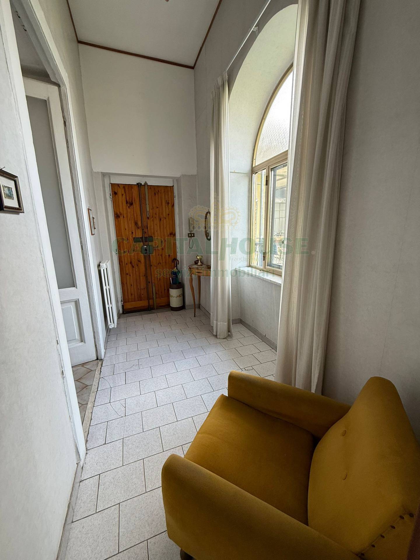L'appartamento composto da un ampio ingresso che conduce a un disimpegno luminoso, caratterizzato da una magnifica vetrata che si affaccia sulla suggestiva corte condominiale.