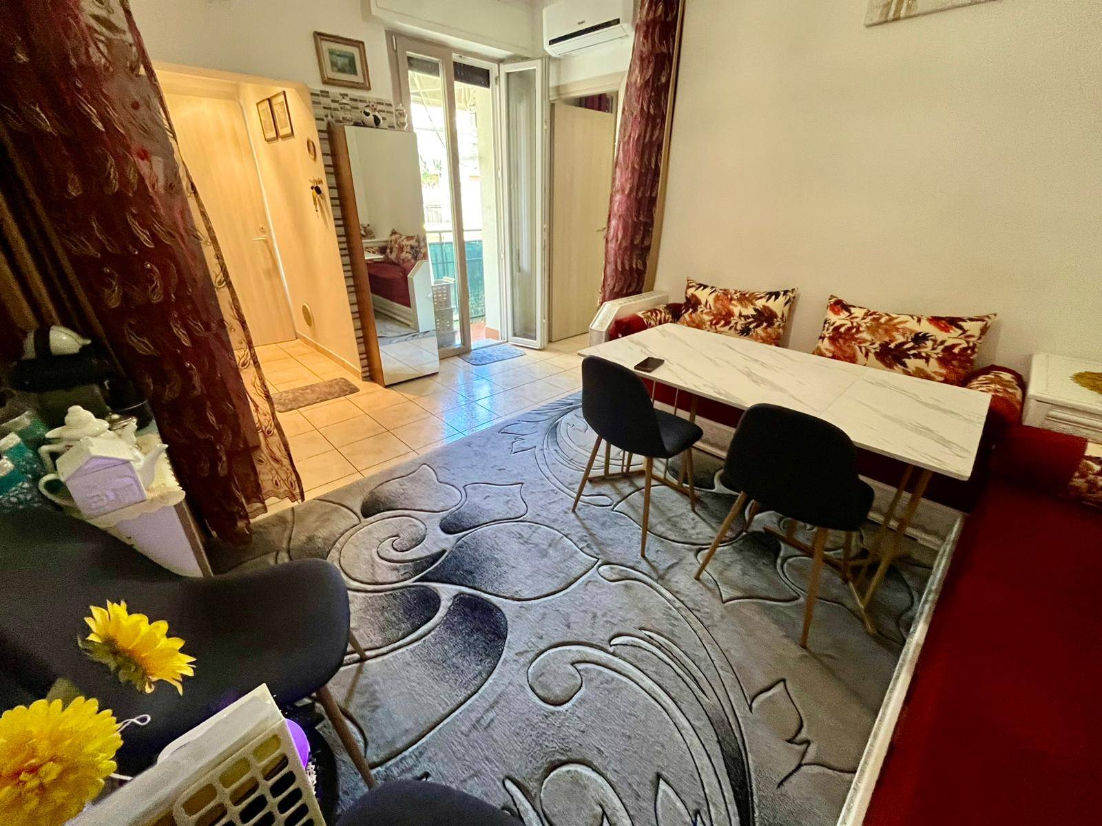 Lingresso si apre sul soggiorno con cucinotto e balcone dotato di tenda, proseguendo troviamo la camera matrimoniale e un bagno finestrato con vasca.