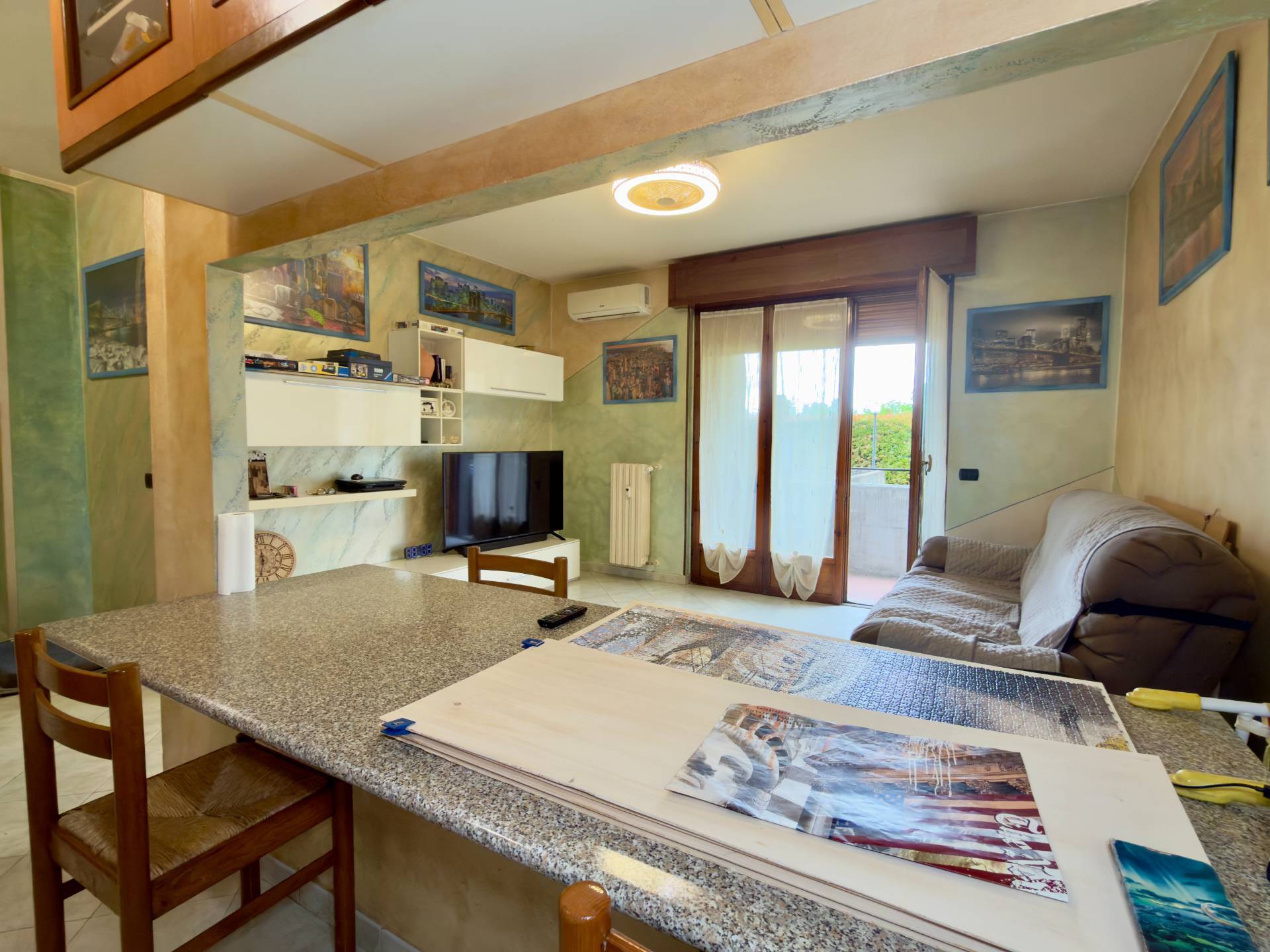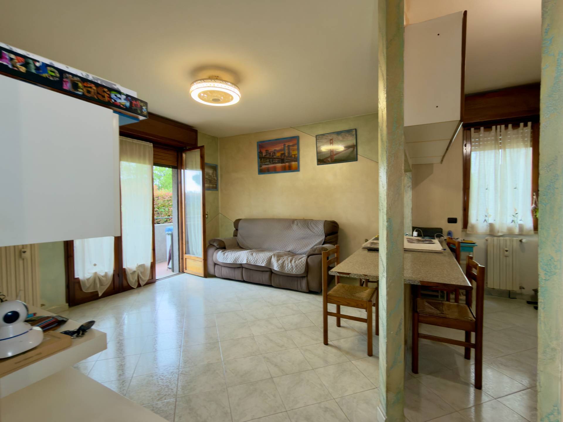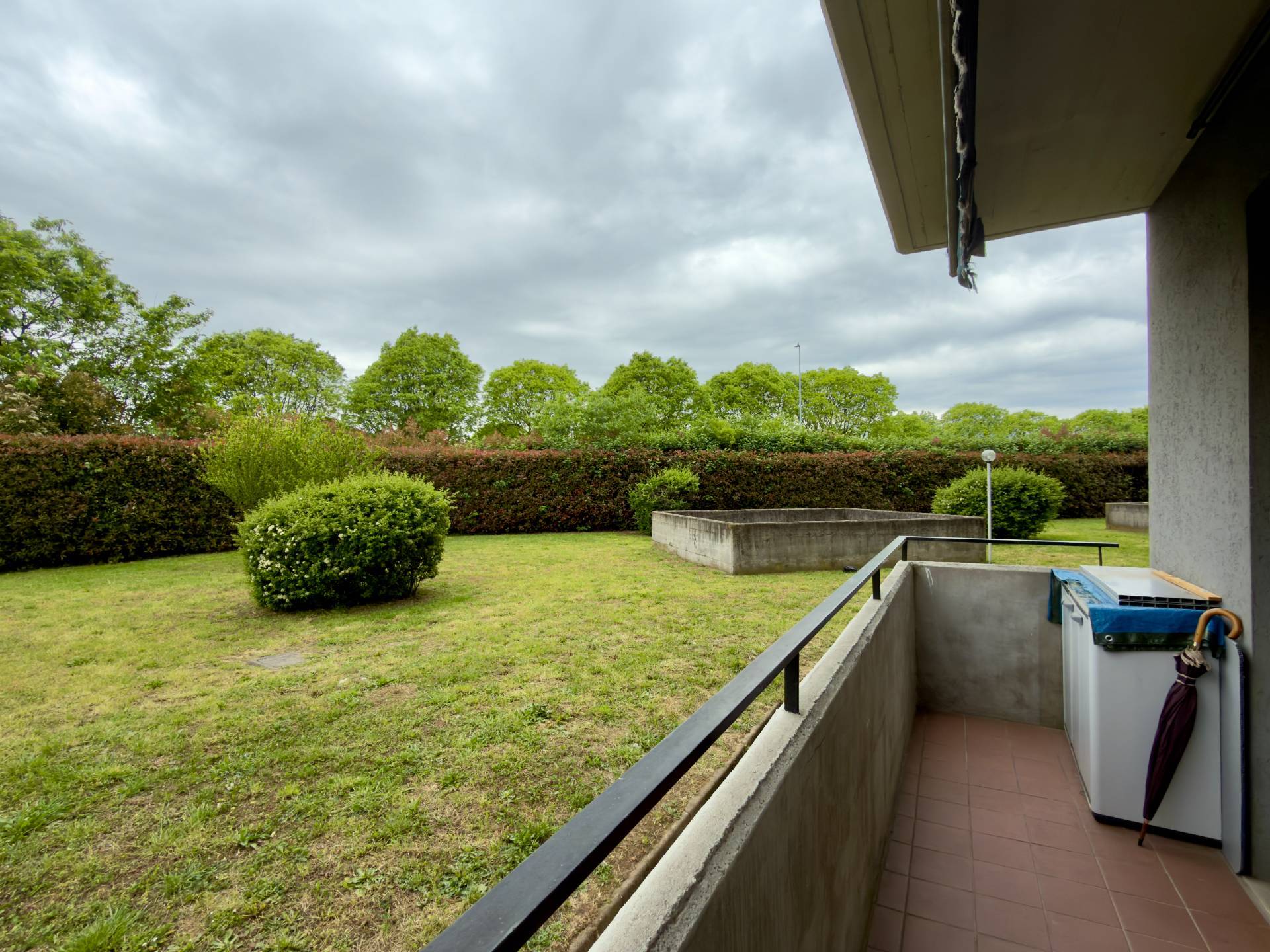 L'appartamento si trova al piano terra di una palazzina di 9 piani totali con affaccio interno, sul verde del complesso residenziale.