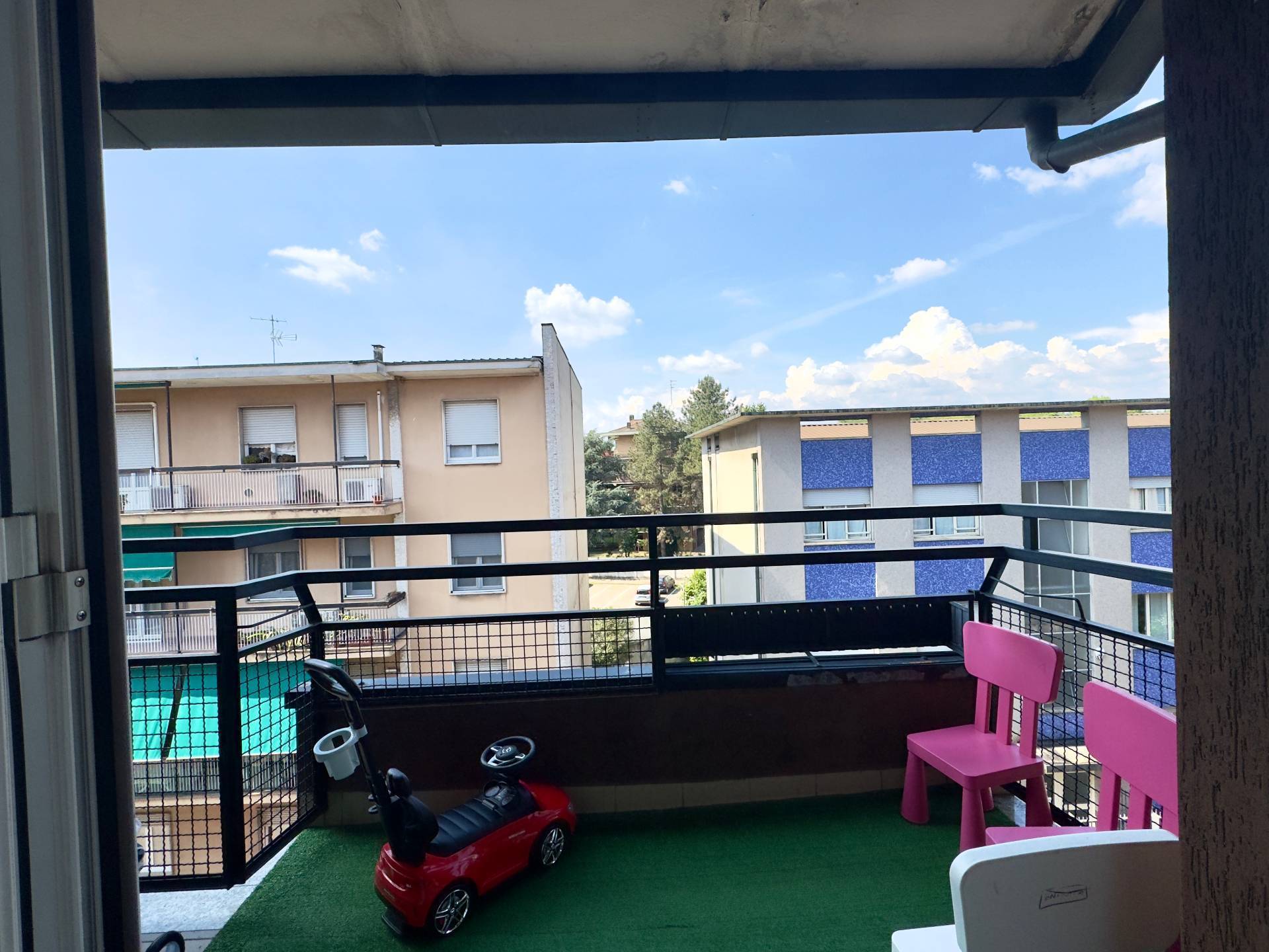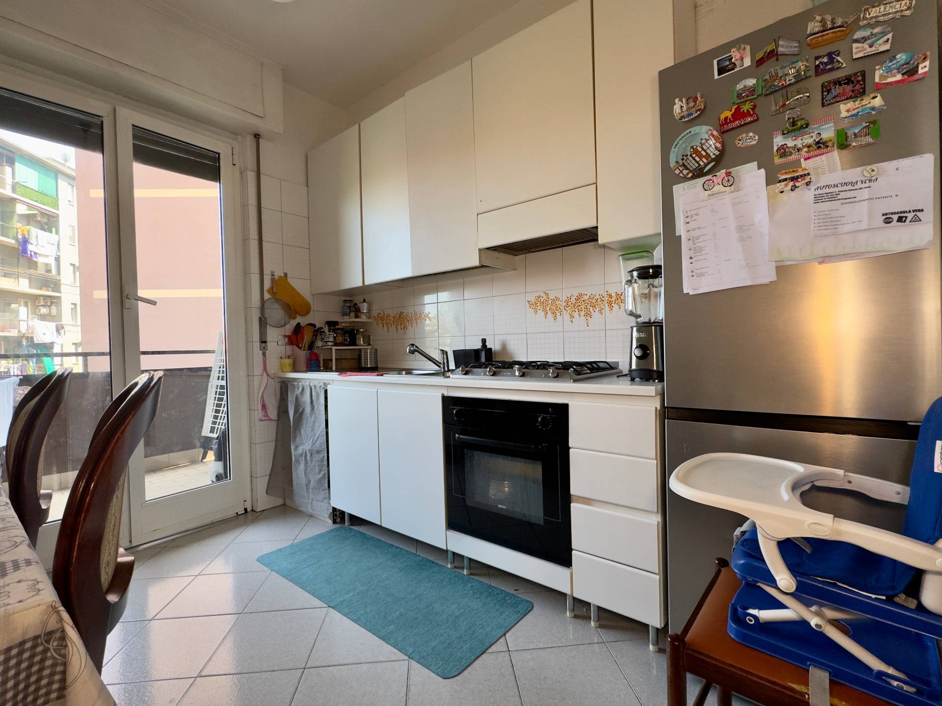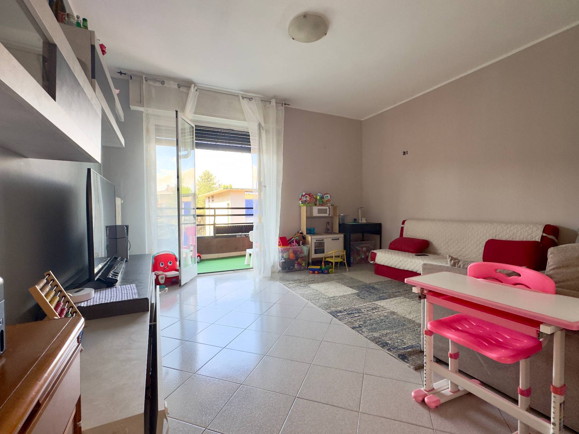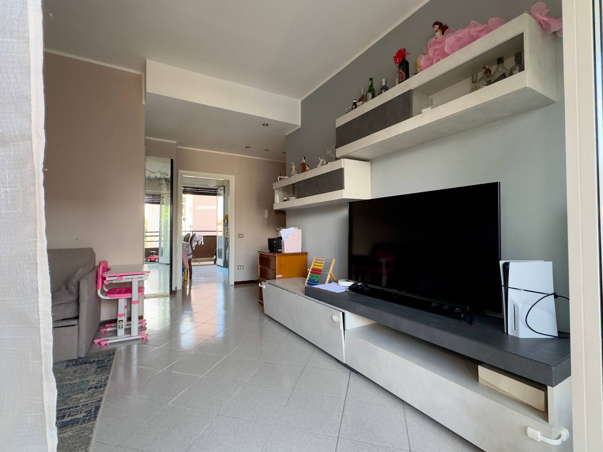 L'appartamento composto da ingresso, ampio e luminoso soggiorno con accesso ad un ampio balcone, cucina abitabile con accesso al secondo balcone, proseguendo il corridoio, andiamo verso la zona notte composta da una comoda camera da letto, la cameretta e adiacente troviamo il bagno finestrato con vasca e box doccia.