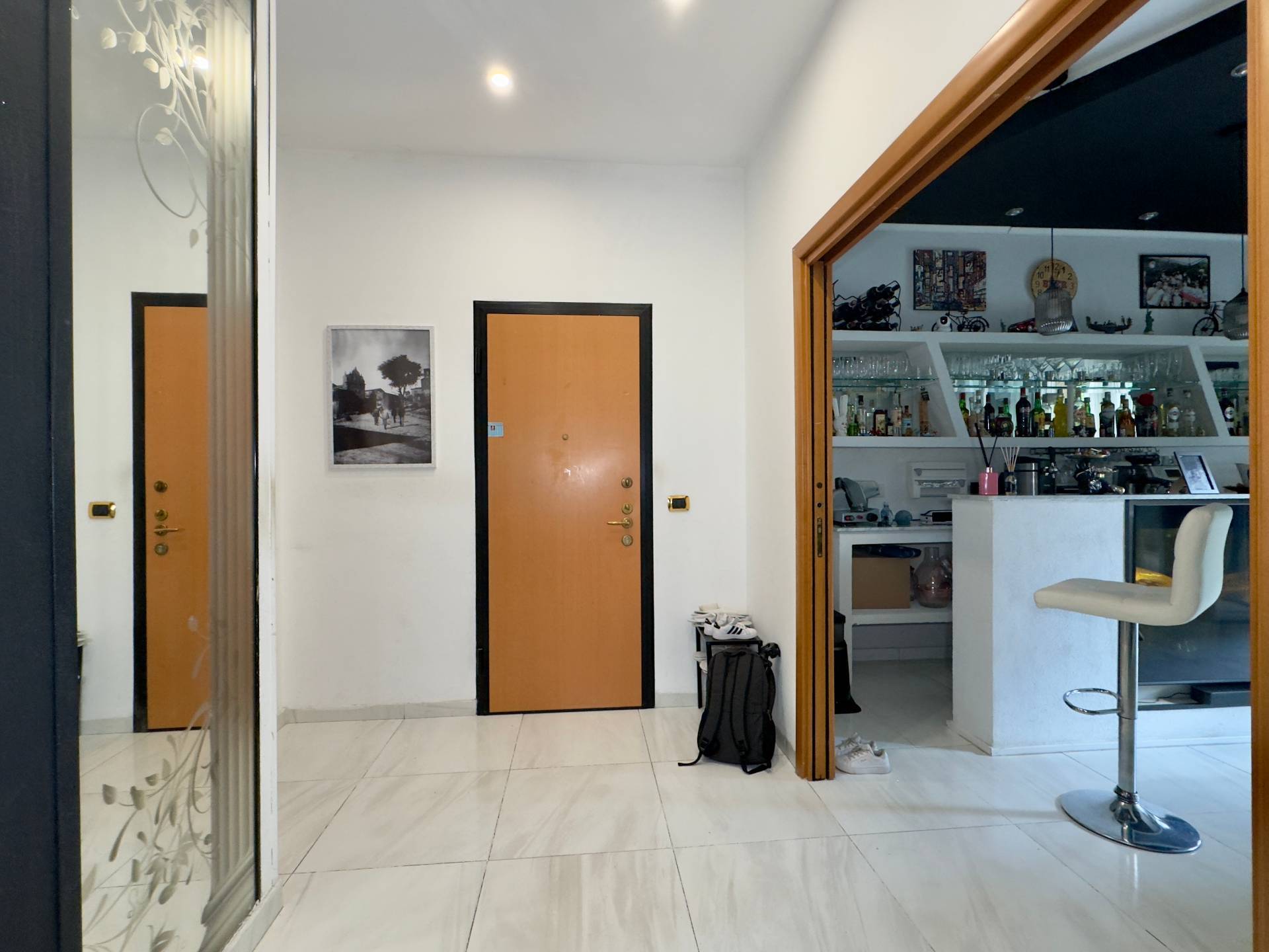 L'appartamento si distingue per la generosa metratura e per la distribuzione lungo il corridoio degli spazi interni.