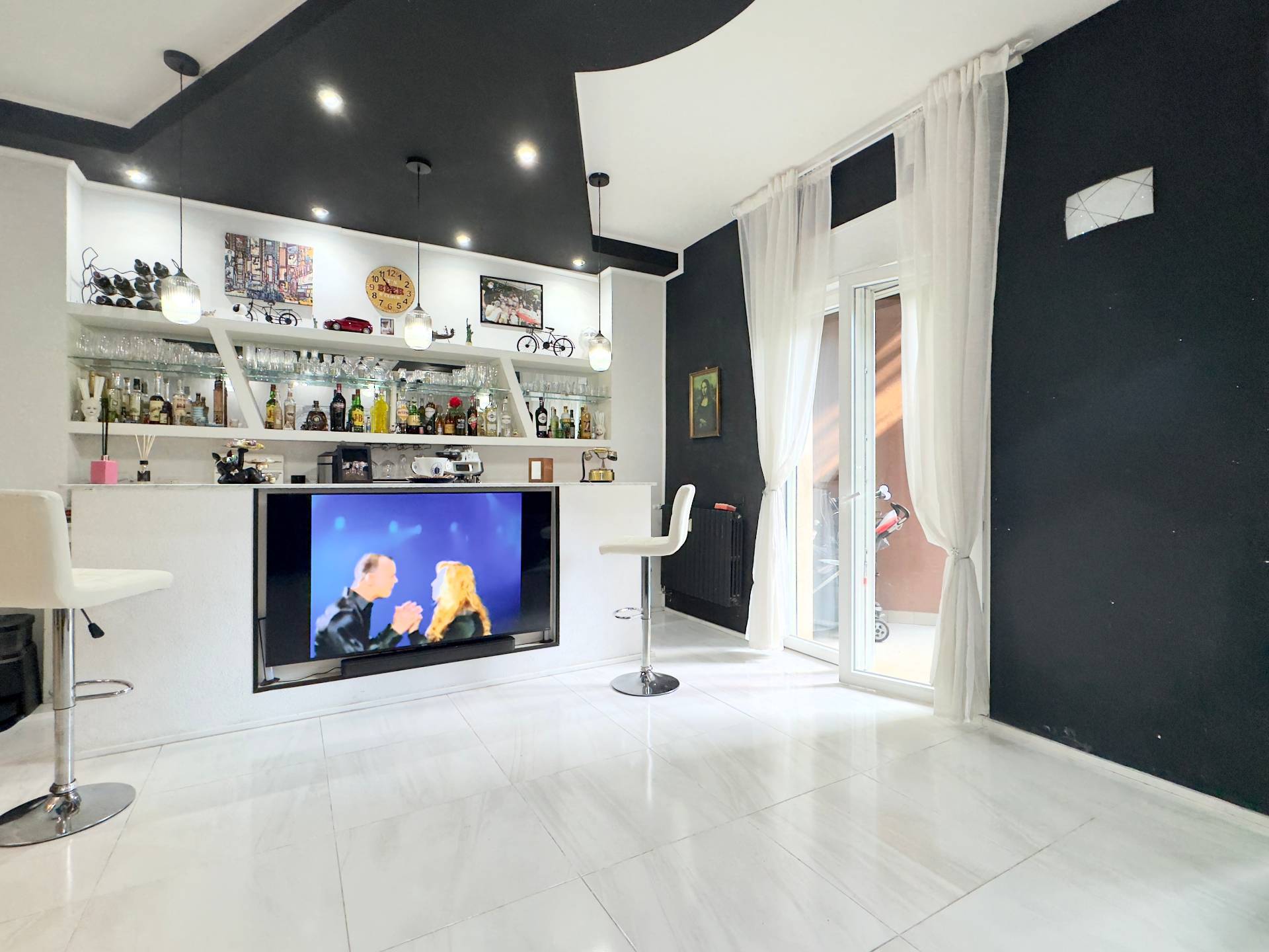 Entrando nellabitazione, non possiamo non notare il soggiorno doppio, un vero punto di forza della casa, ampio, lineare e con accesso diretto al balcone condiviso con la camera matrimoniale, lambiente ideale per vivere momenti di relax.