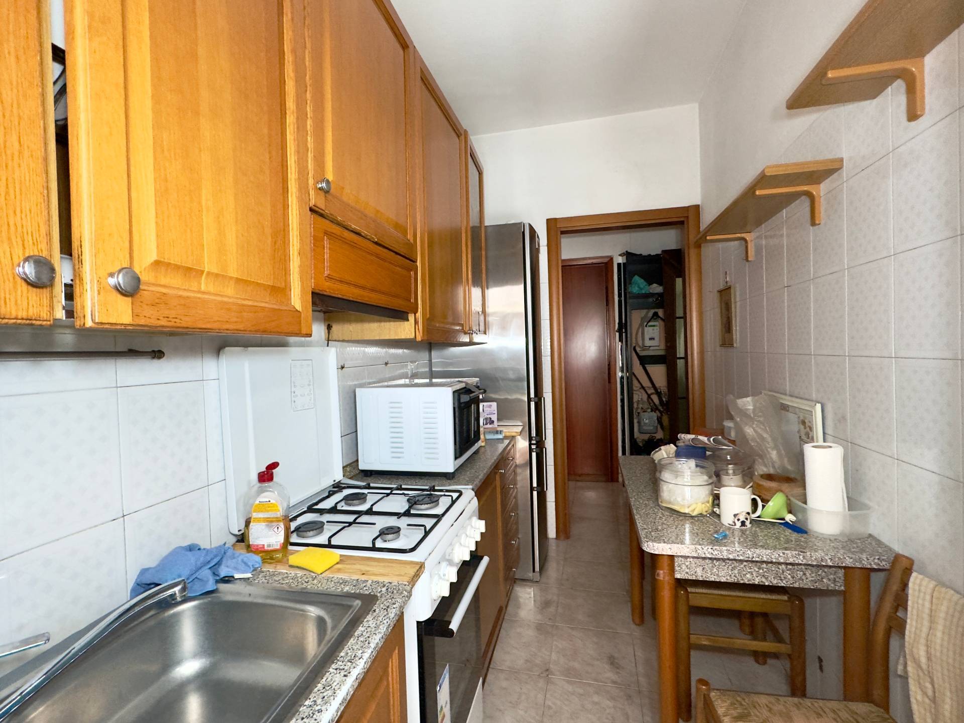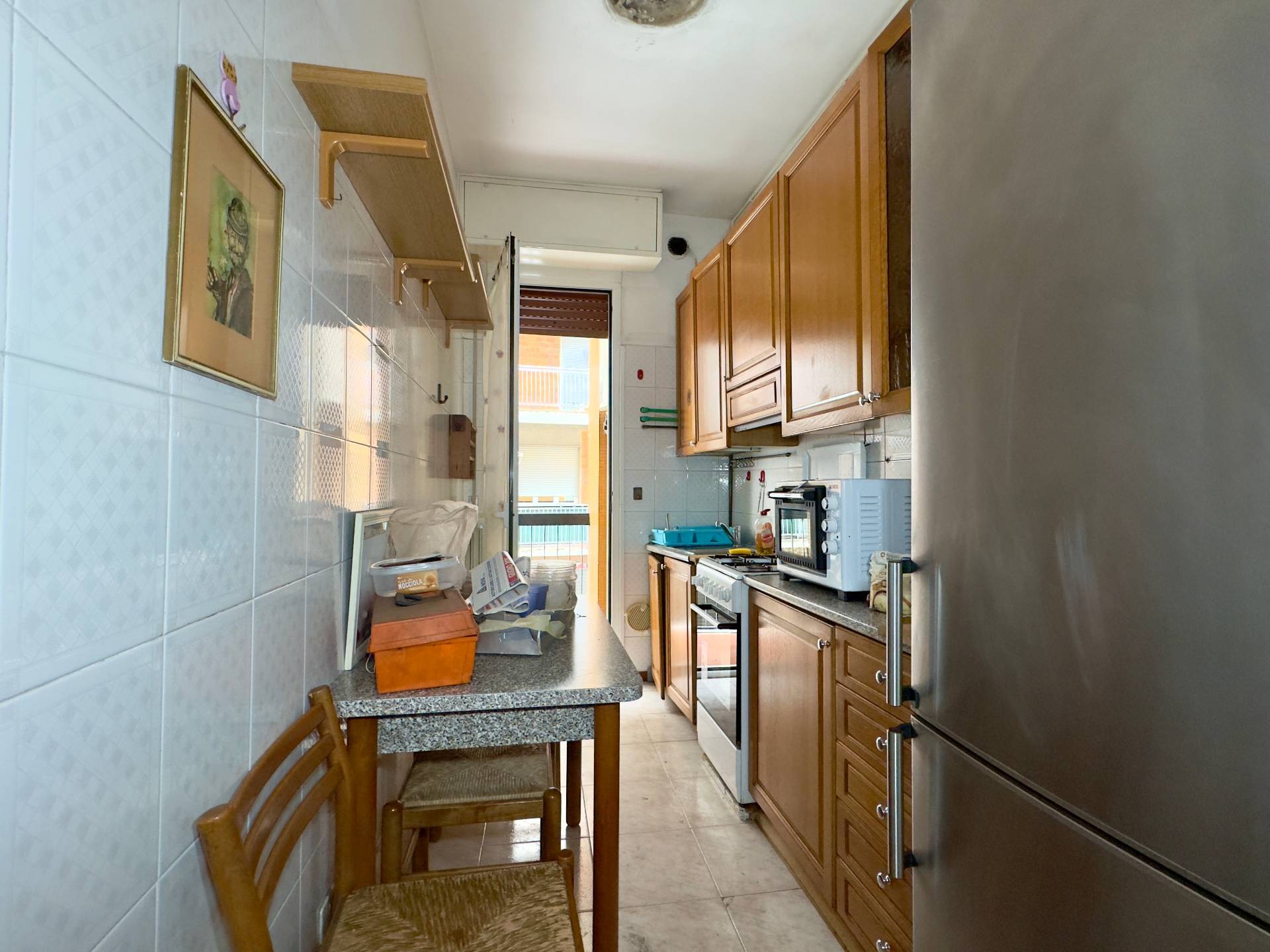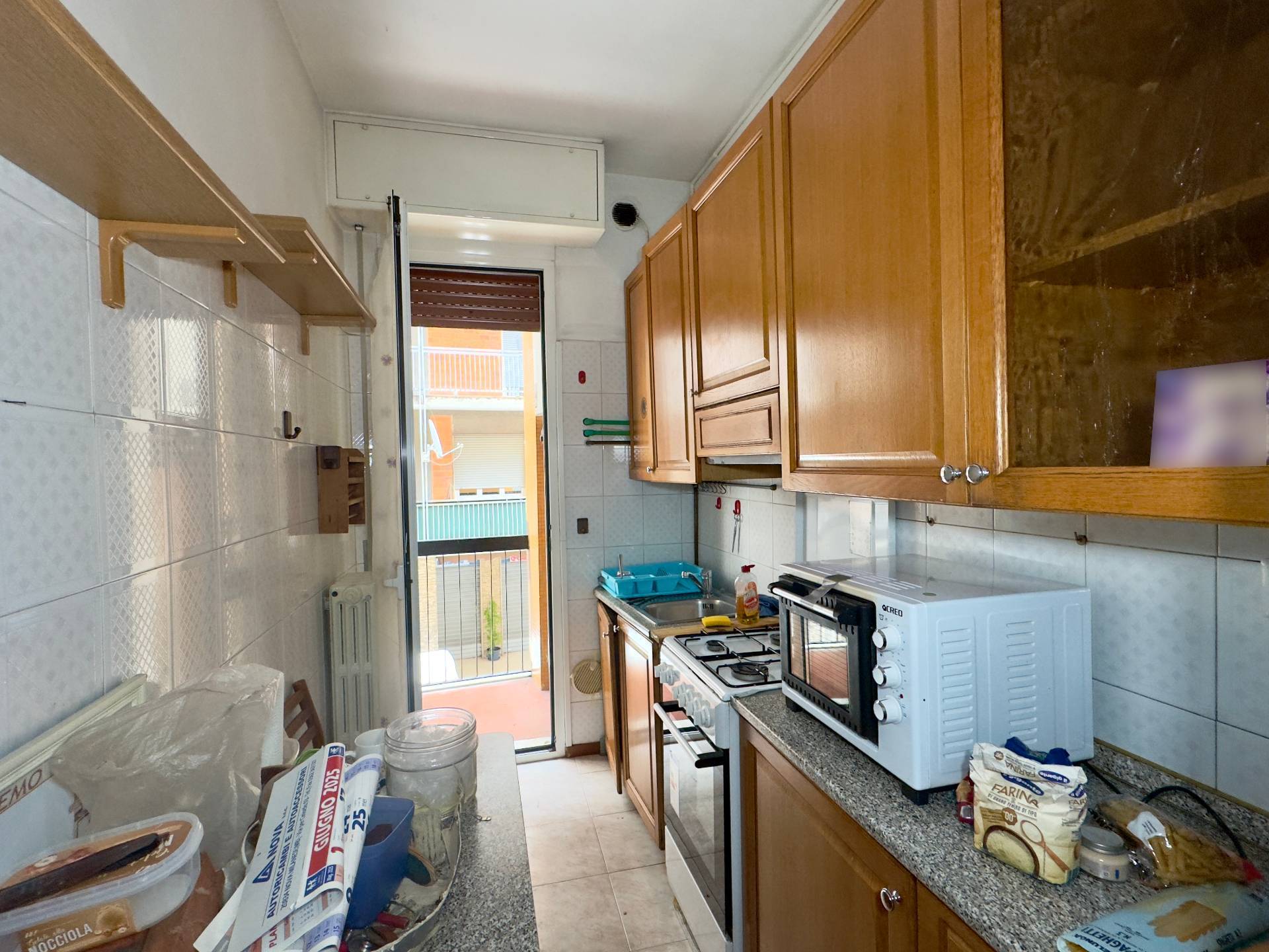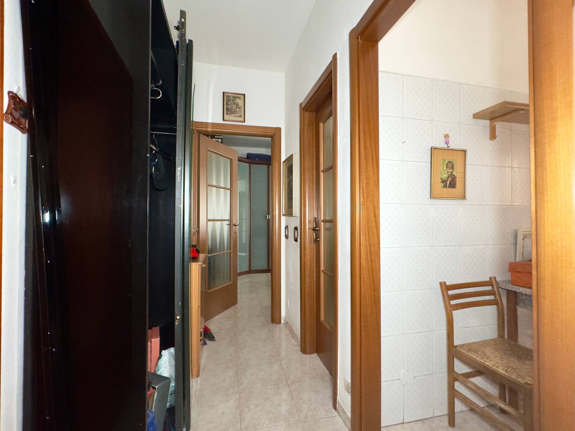 Lingresso si apre su un disimpegno che conduce ai diversi ambienti della casa. Sulla destra si trova il soggiorno, ben proporzionato e facilmente arredabile, mentre proseguendo si accede alla cucina semi-abitabile, con uscita diretta sul balconcino che affaccia verso lesterno dello stabile.