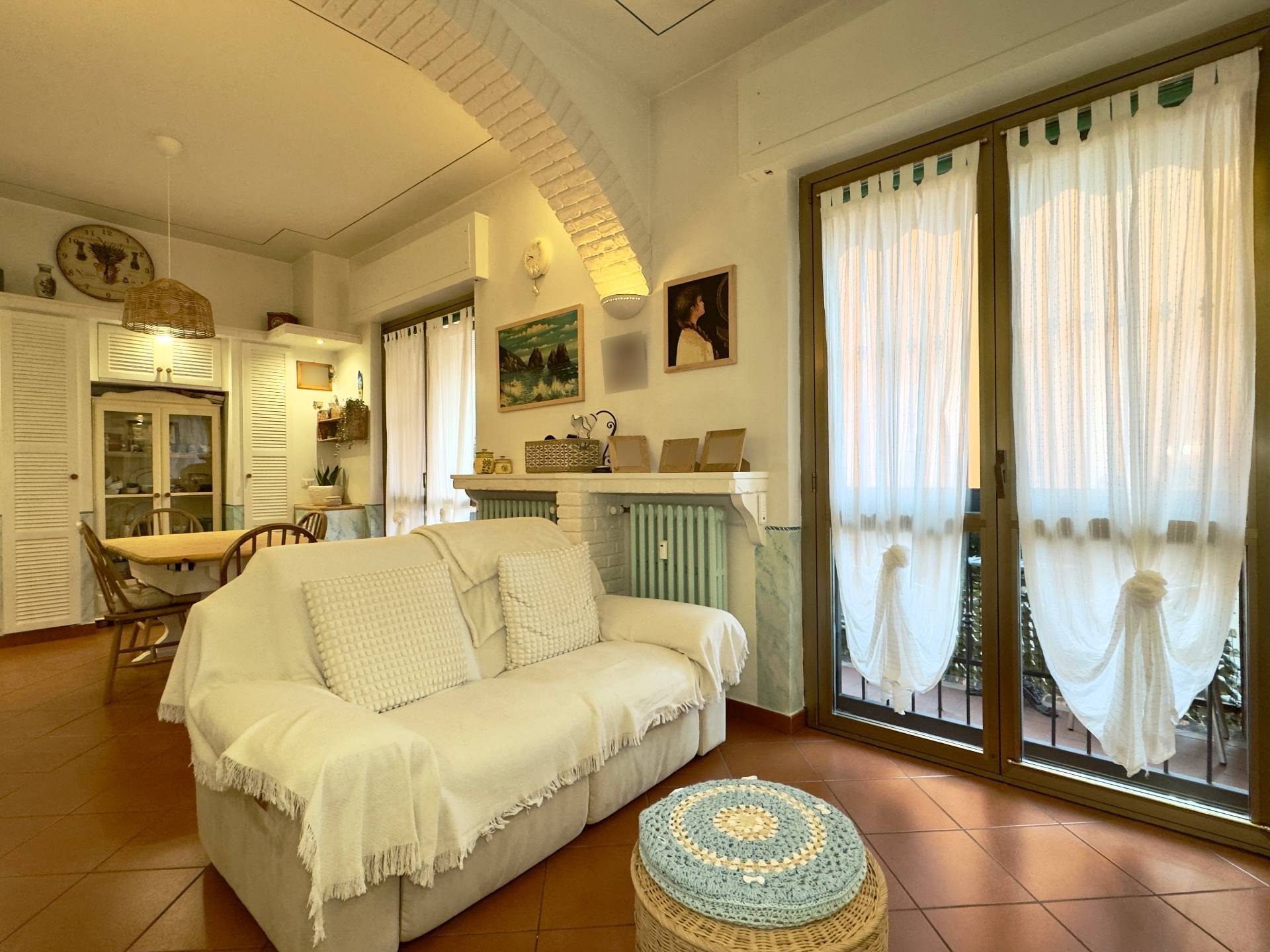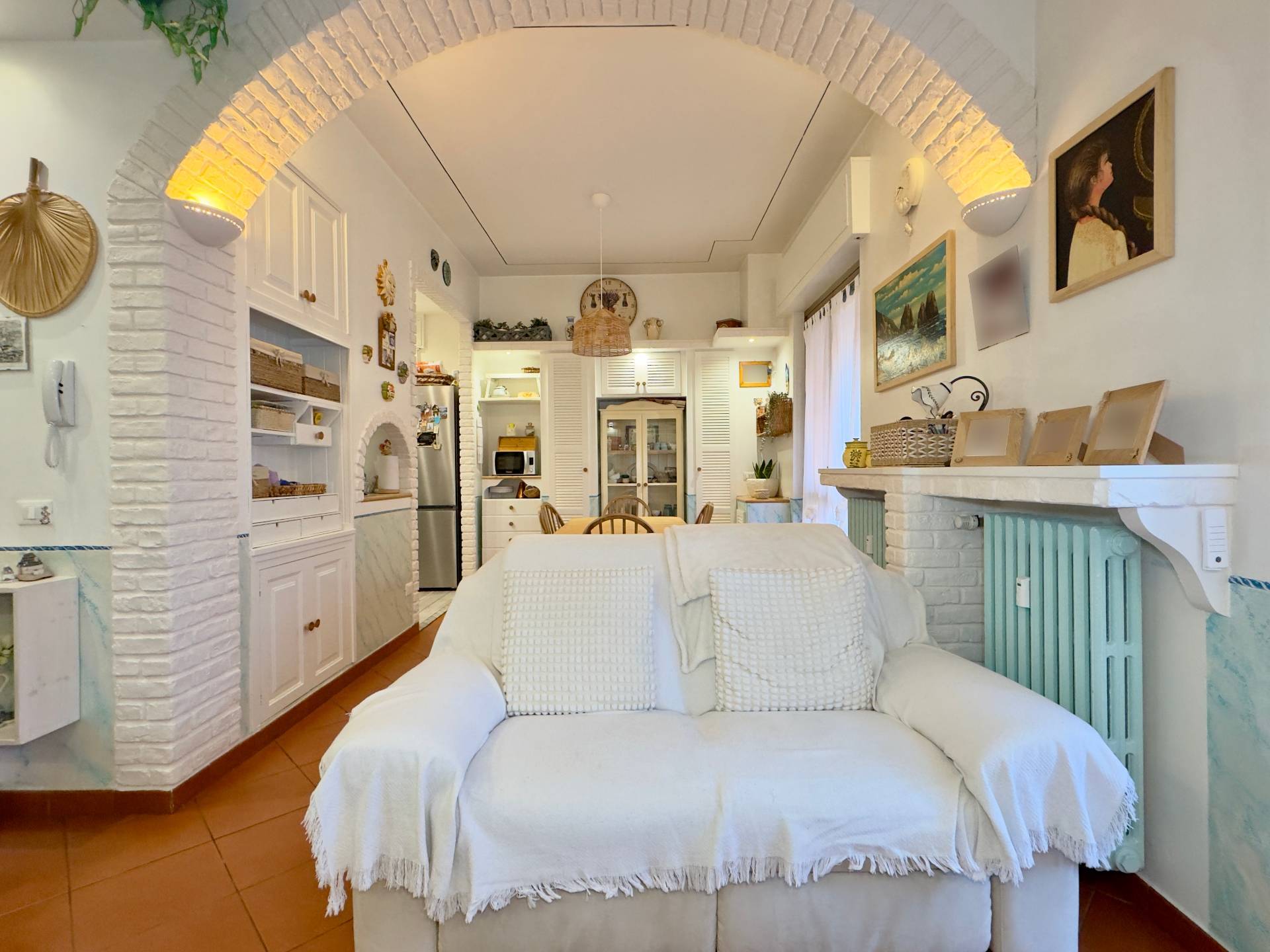 Lingresso si apre su un soggiorno doppio con accesso al balcone e zona cucina a vista, pensata per sfruttare al meglio gli spazi.