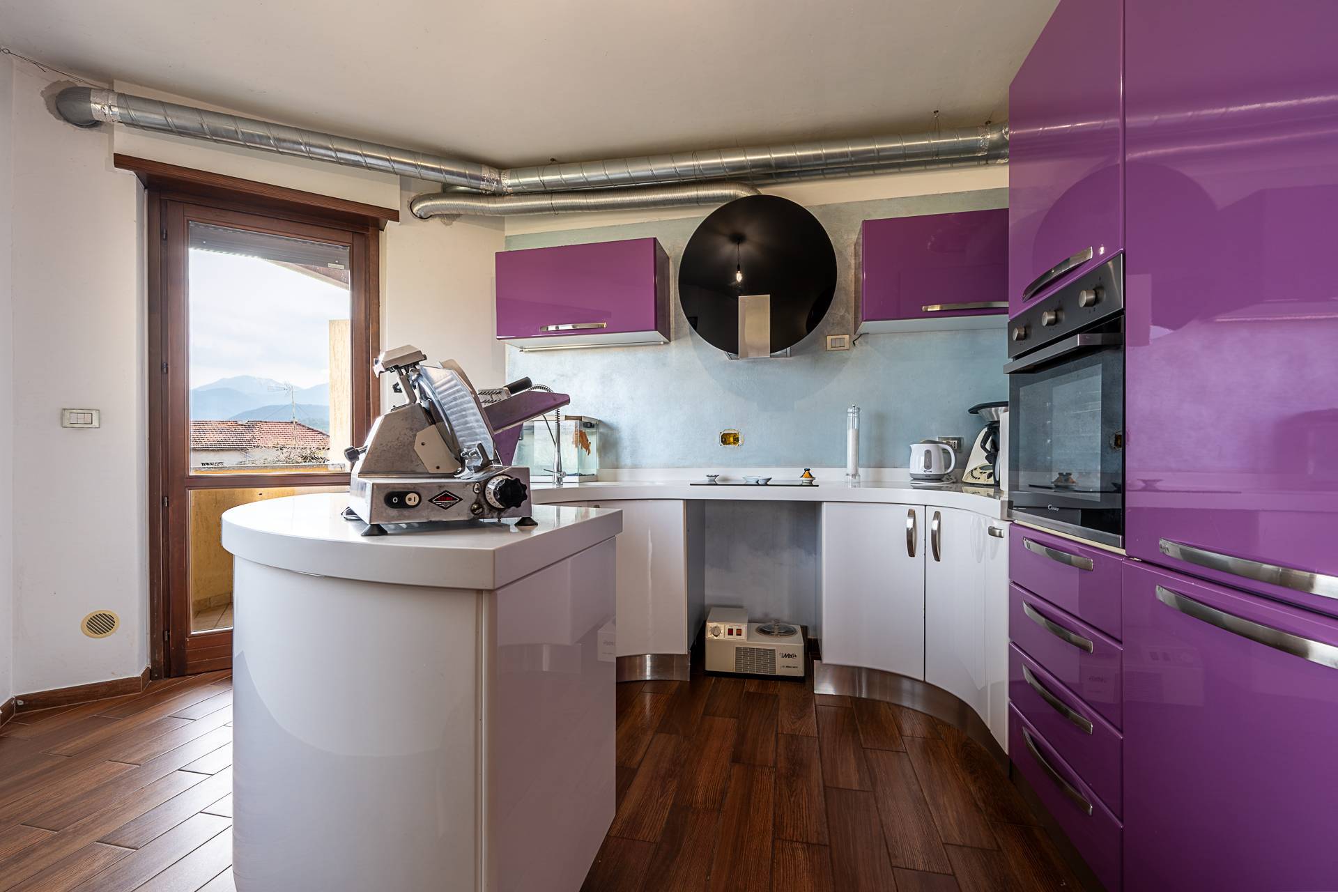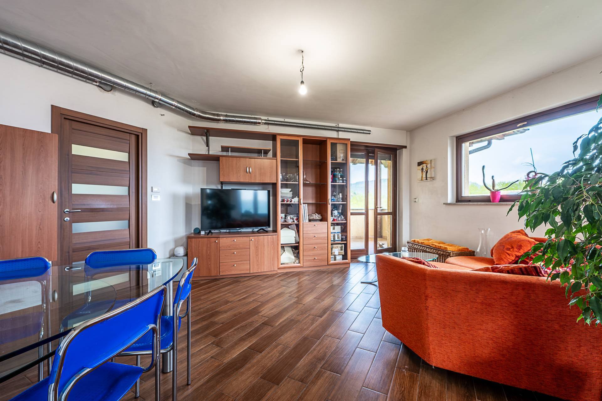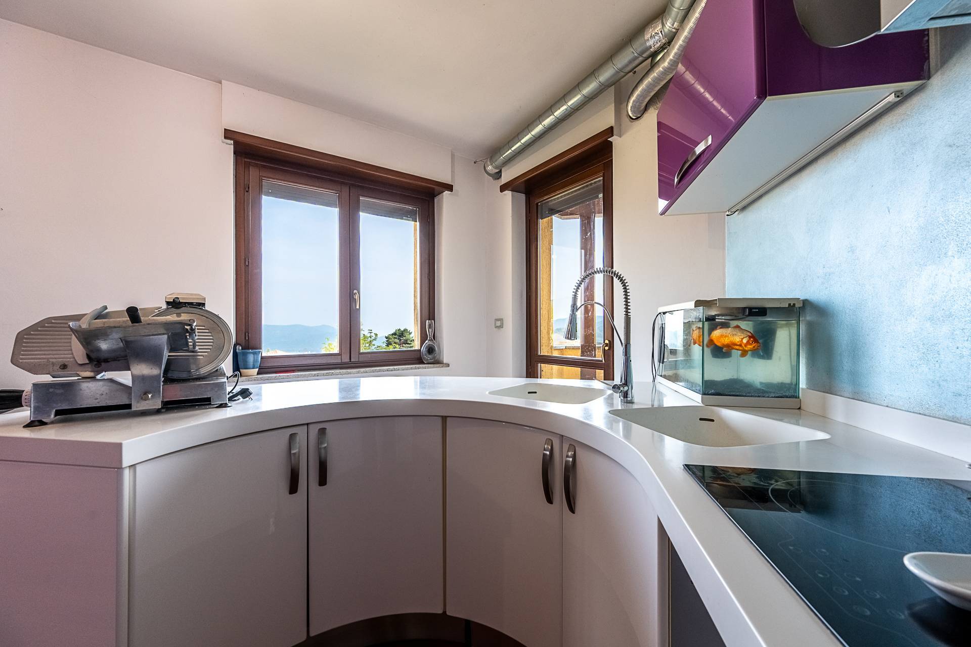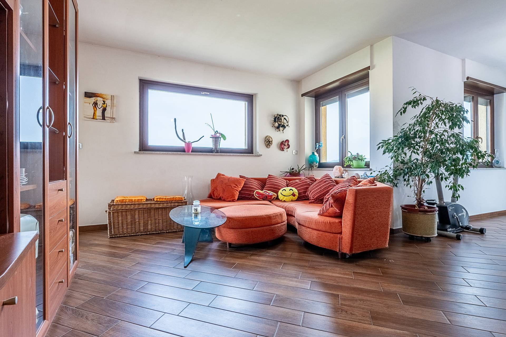 L'appartamento gode di una ottima posizione angolare libera su tre lati che garantisce una ottima luminosit, posto al primo piano e gode di ampie vetrate con vista sulle montagne e sulla valle.