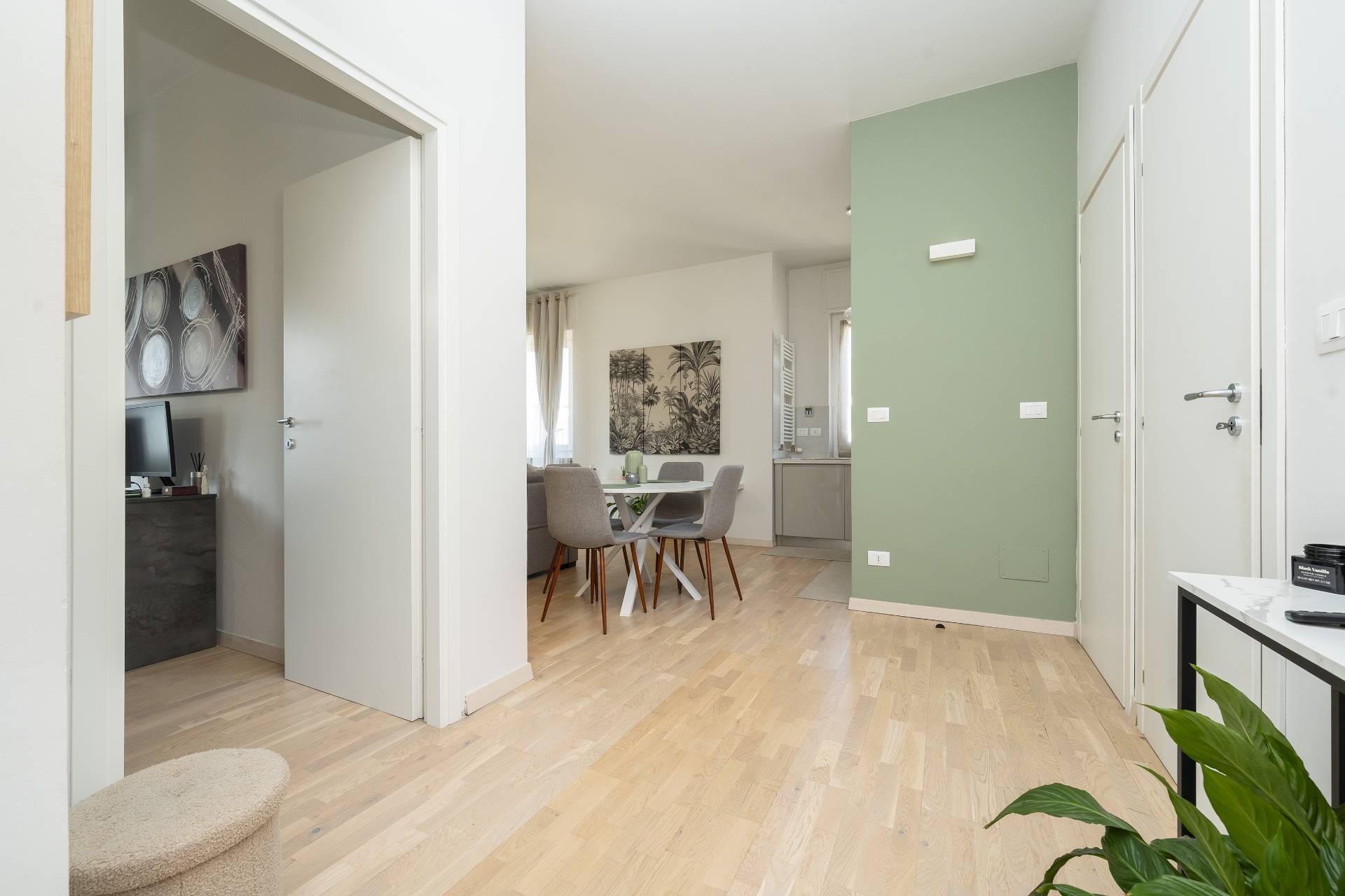 In posizione strategica ed in forte valorizzazione, proponiamo splendido appartamento panoramico allultimo piano, completamente ristrutturato nel 2020. Limmobile si presenta in condizioni impeccabili ed composto da: ingresso su disimpegno, luminoso soggiorno con cucina a vista con accesso su un terrazzino godibile , camera da letto, bagno e comodo ripostiglio.