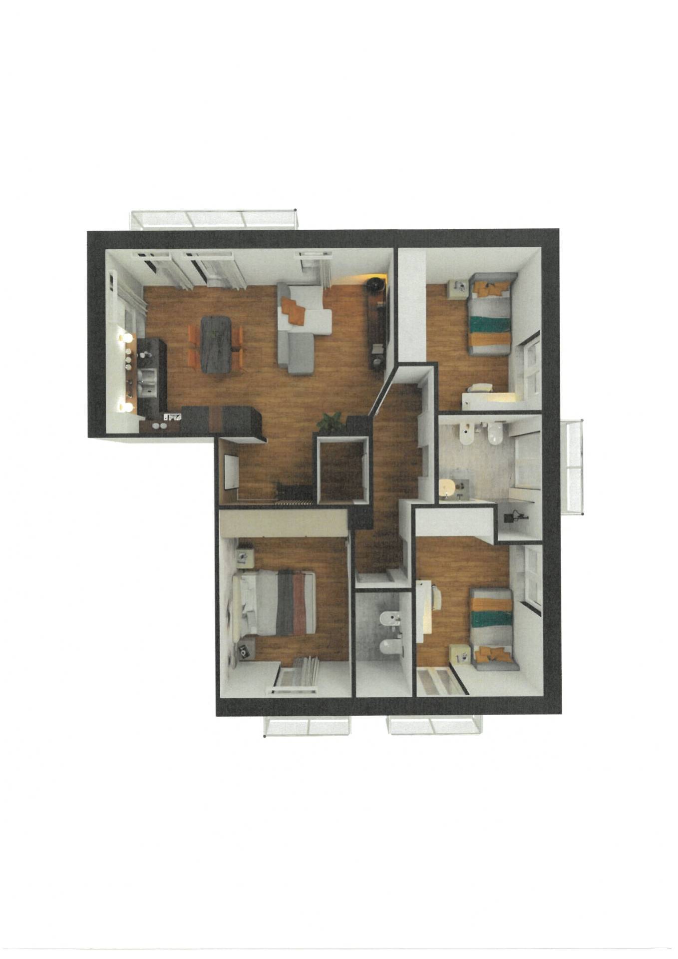 ALLOGGIO CON TERRAZZO Disimpegno Soggiorno con cucina a vista Tre camere da letto Due servizi Ripostiglio Terrazzo di circa 30 mq Cantina Consegna prevista: aprile 2026 Opportunit unica. Contatta l'inserzionista