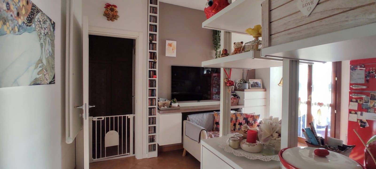 Nella zona giorno troviamo: cucina/soggiorno open space con accesso alla terrazza di circa 10 mq. Nella zona notte troviamo il disimpegno con comodo armadio a muro, camera matrimoniale ampia e bagno con doccia senza finestra.