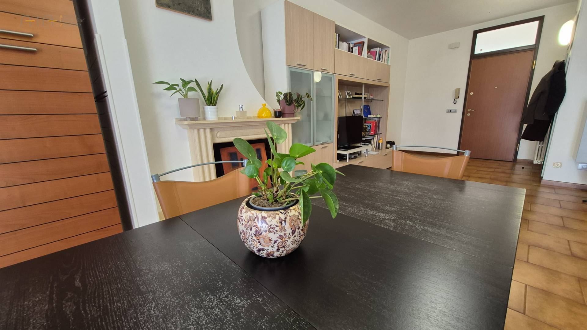 Appartamento di circa 90 mq. situato al P1 con camino, balconi, garage e fondaco completamente arredato.