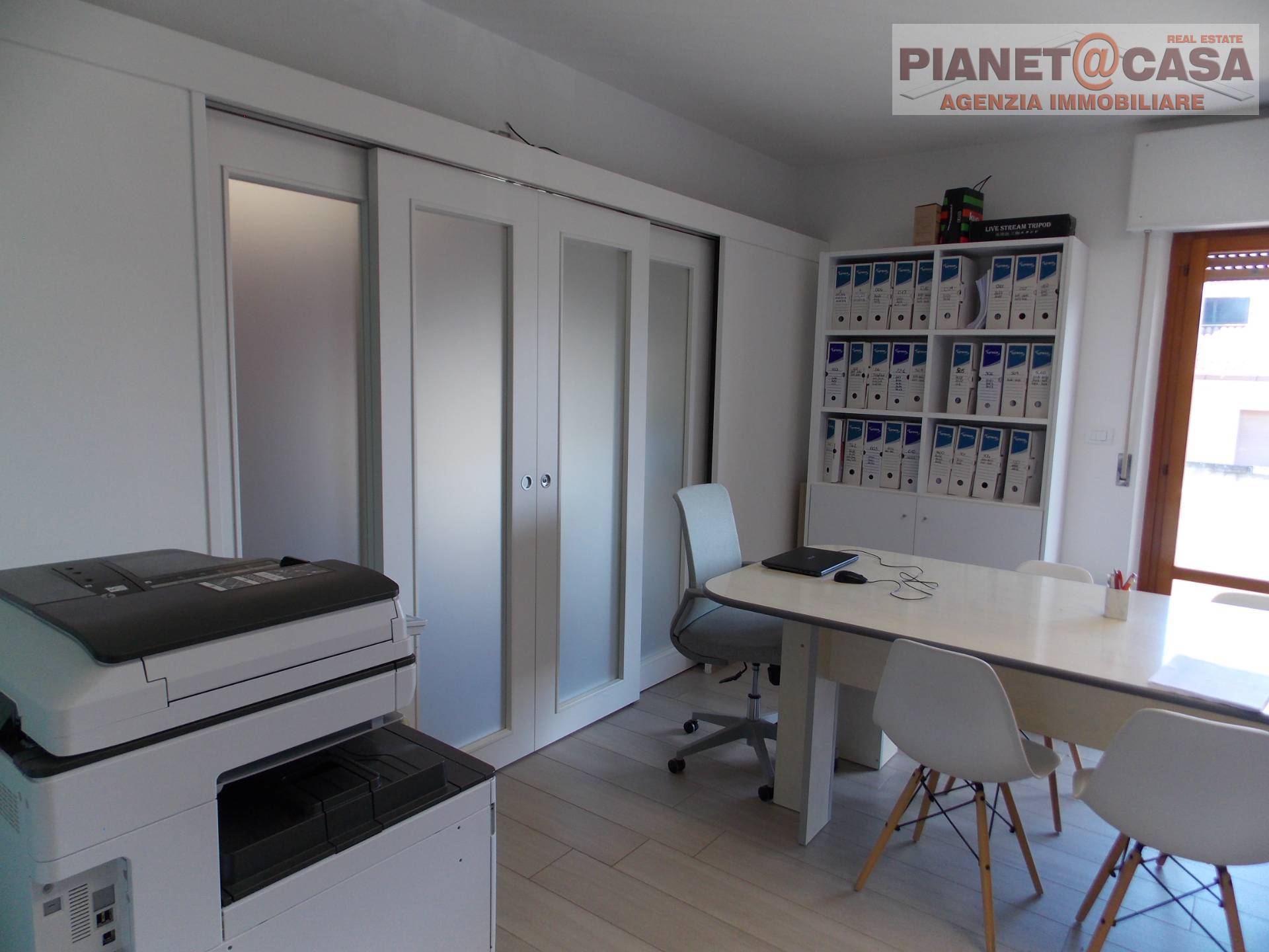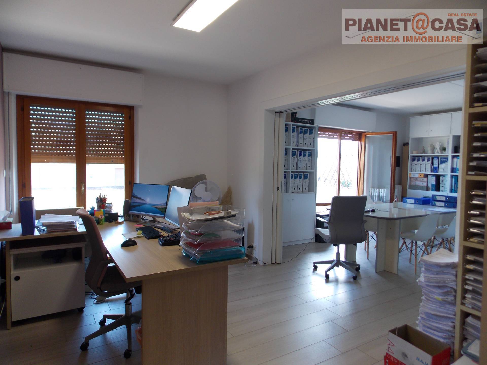 L' immobile, posto al Secondo Piano senza ascensore in palazzina in buono stato di manutenzione attualmente adibito ad ufficio, ma comunque composto da ingresso su disimpegno, soggiorno, cucina abitabile, tre camere matrimoniali, due bagni ed un ripostiglio, oltre a Terrazzo lastricato a livello.