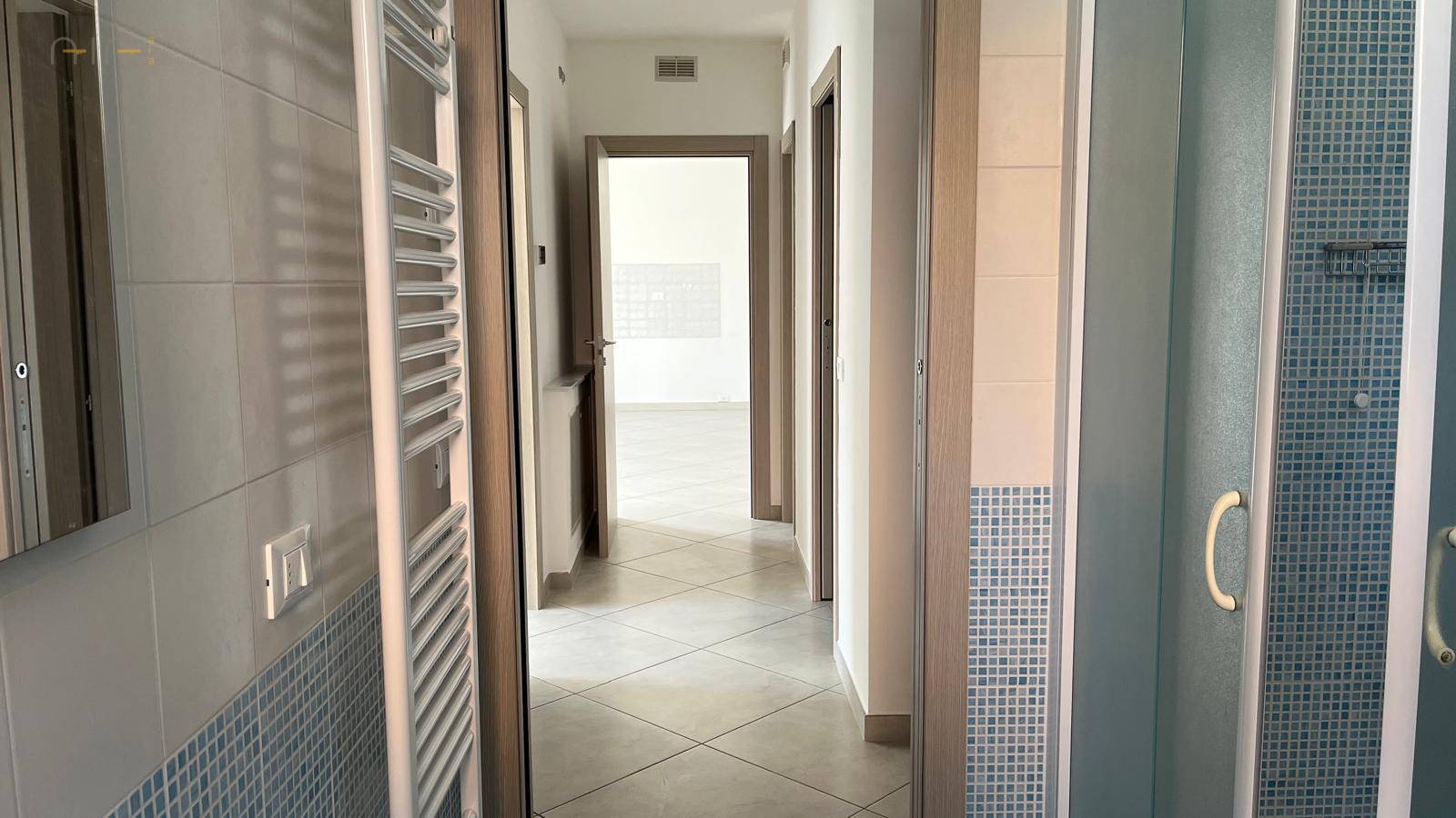 Lappartamento presenta pavimentazione in gres porcellanato, infissi in alluminio con persiane, portoncino blindato, impiantistica a norma e riscaldamento a pavimento con predisposizione al raffrescamento, garantendo elevato comfort abitativo e contenuti consumi energetici.