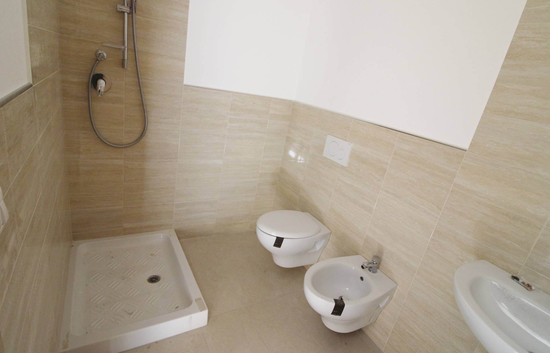 Ingresso su ampio soggiorno - pranzo con angolo cottura a vista, due camere da letto di cui una matrimoniale ed una singola, un bagno con doccia ad areazione forzata, piccolo sgabuzzino con allacci, Corte esterna esclusiva di mq 6 e terrazzo abitabile vista mare 13 mq. Esposizione nord - sud. Completa la propriet un garage al piano interrato di 22 mq. Il fabbricato di recente costruzione realizzato in Classe Energetica D, muratura con intercapedine isolante interna, impiantistica autonoma e non centralizzata, pavimentazione in gres porcellanato, bagni con sanitari sospesi, infissi interni in alluminio con doppio vetro a taglio termico ed isolate acusticamente, tapparelle in pvc ultra leggere, portone di ingresso del tipo blindato.