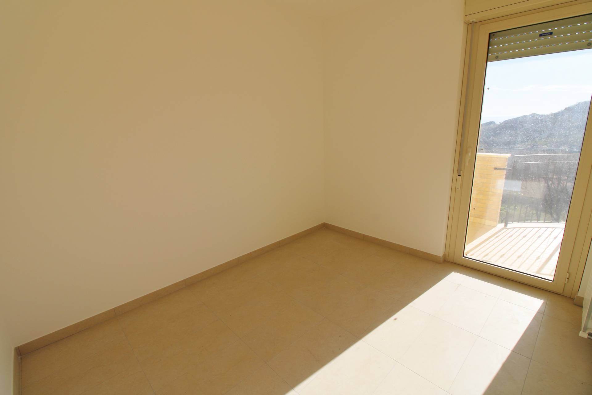 Ingresso su ampio soggiorno - pranzo con angolo cottura a vista, due camere da letto di cui una matrimoniale ed una singola, un bagno con doccia ad areazione forzata, piccolo sgabuzzino con allacci, Corte esterna esclusiva di mq 6 e terrazzo abitabile vista mare 13 mq. Esposizione nord - sud. Completa la propriet un garage al piano interrato di 22 mq. Il fabbricato di recente costruzione realizzato in Classe Energetica D, muratura con intercapedine isolante interna, impiantistica autonoma e non centralizzata, pavimentazione in gres porcellanato, bagni con sanitari sospesi, infissi interni in alluminio con doppio vetro a taglio termico ed isolate acusticamente, tapparelle in pvc ultra leggere, portone di ingresso del tipo blindato.