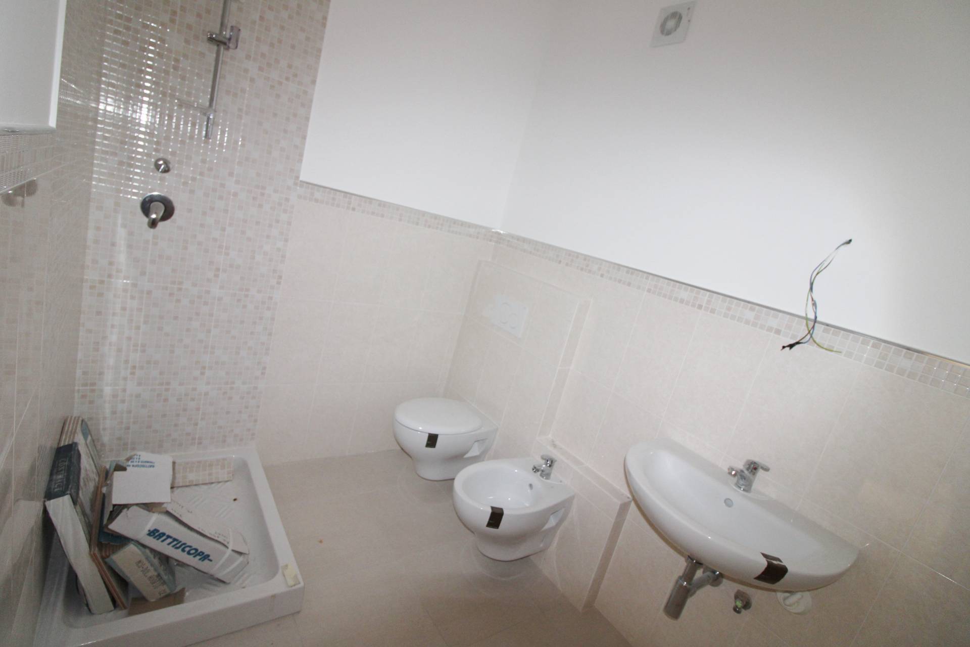 Ingresso su ampio soggiorno - pranzo con angolo cottura a vista, due camere da letto matrimoniali, un bagno con doccia ad areazione forzata, Corte esterna esclusiva di mq 10 e terrazzo abitabile vista mare 14 mq. Esposizione nord - sud. Completa la propriet un posto auto assegnato al piano interrato sub 23. Il fabbricato di recente costruzione realizzato in Classe Energetica D, muratura con intercapedine isolante interna, impiantistica autonoma e non centralizzata, pavimentazione in gres porcellanato, bagni con sanitari sospesi, infissi interni in alluminio con doppio vetro a taglio termico ed isolate acusticamente, tapparelle in PVC ultra leggere, portone di ingresso del tipo blindato.