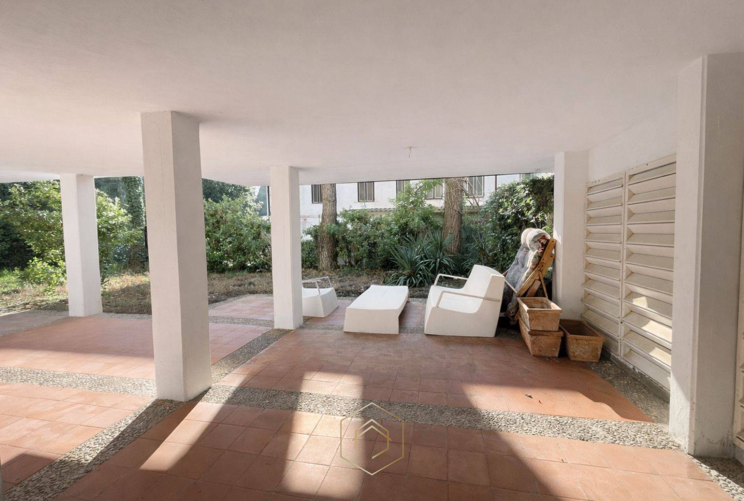 Nel porticato vi inoltre la possibilit di realizzare una cucina esterna, ideale per sfruttare al massimo gli spazi outdoor sia come soluzione indipendente, sia nellottica di uneventuale unificazione con lappartamento superiore.