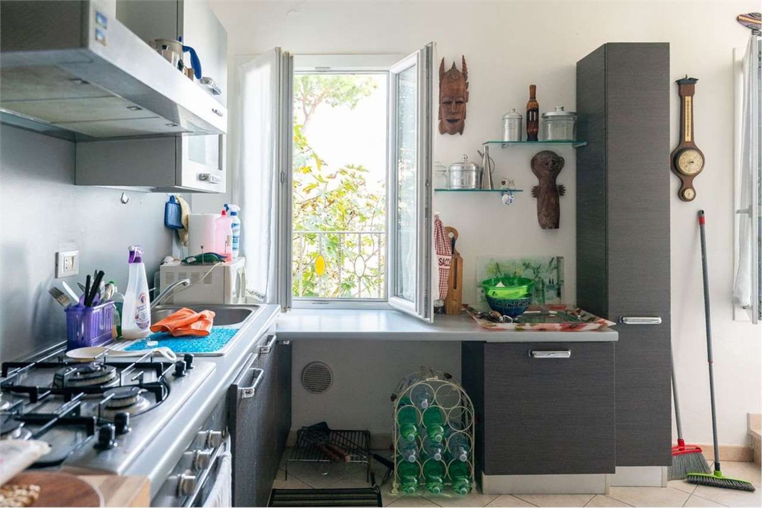 Salendo al primo piano, troverai il vero cuore della casa: un luminoso soggiorno dove la cucina si integra perfettamente con la zona living.